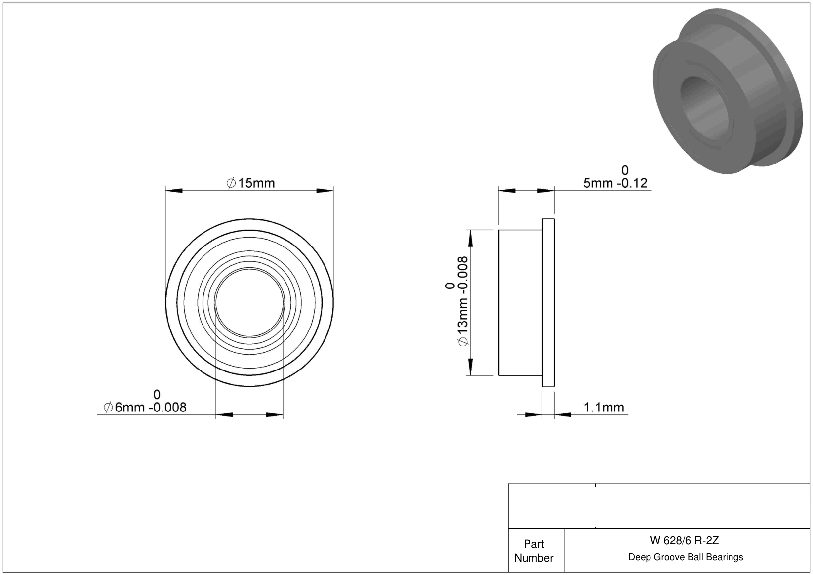 | F-W686T2ZZ1 | Шариковый подшипник | Полиамидный сепаратор, армированный стекловолокном для постоянной температуры +120°C. Два уплотнителя из синтетического каучука. |