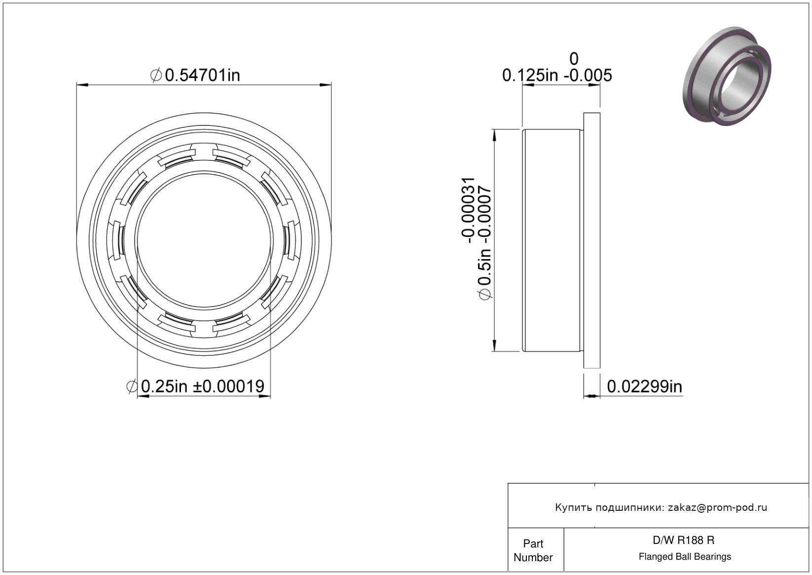 | FR188 | Шариковый подшипник | Дюймовый инструмент с фланцем. |