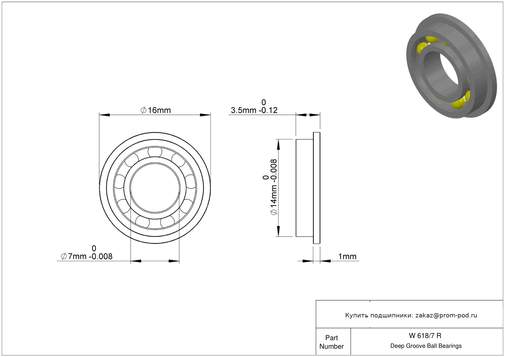 | 618/7-2RS | Шариковый подшипник | Уплотнение с обеих сторон, NBR. |