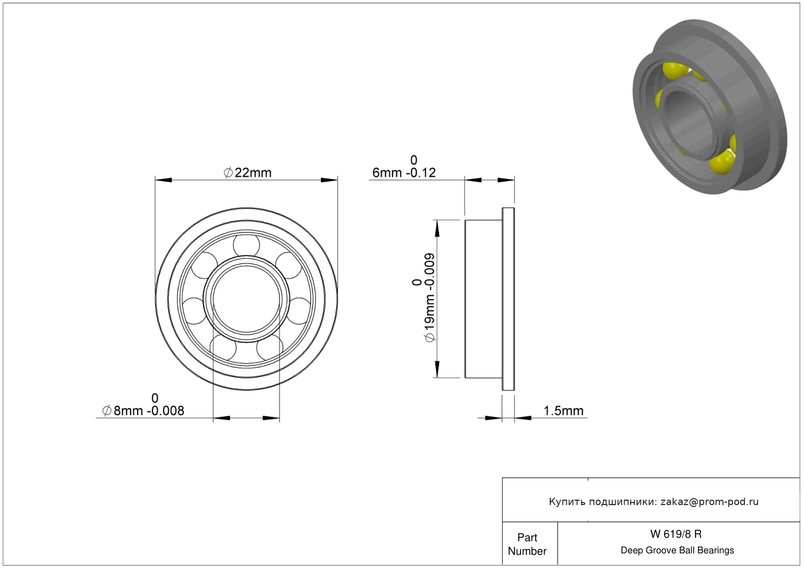 | 619/8H-2RS/F | Шариковый подшипник | |