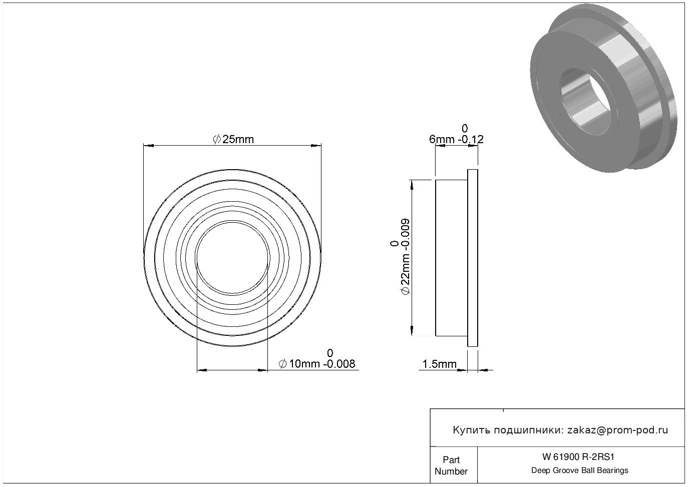 | 6900 2RS | Шариковый подшипник | Уплотнение с обеих сторон, NBR. |