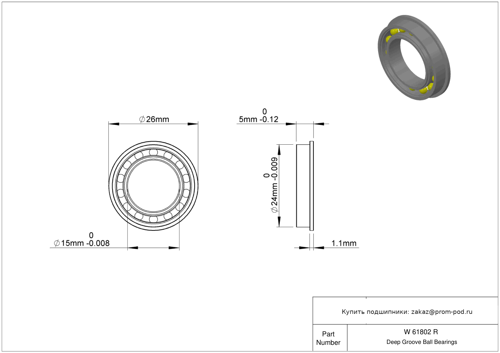 | 6802 2RS | Шариковый подшипник | Уплотнение с обеих сторон, NBR. |