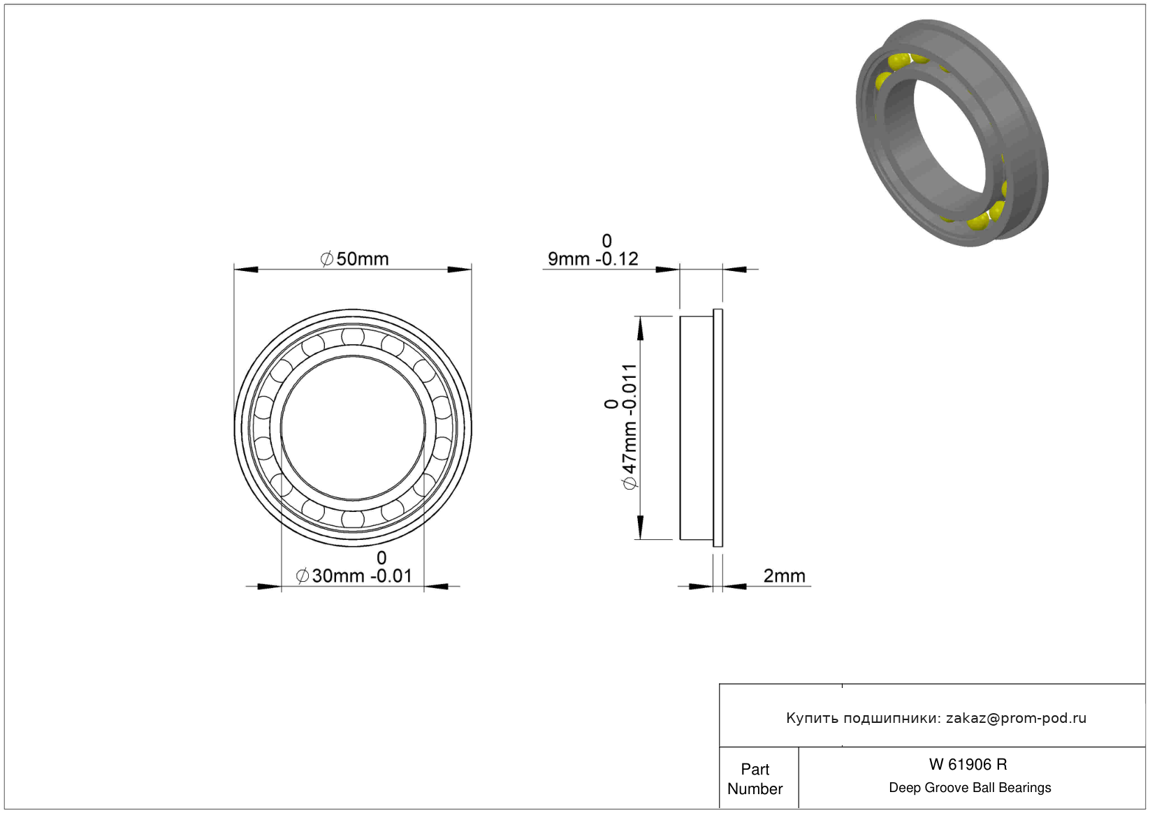 | F6906 2RS | Шариковый подшипник | Стандартное сечение серии для открытых подшипников (.750x.750). Уплотнение с обеих сторон, NBR. |