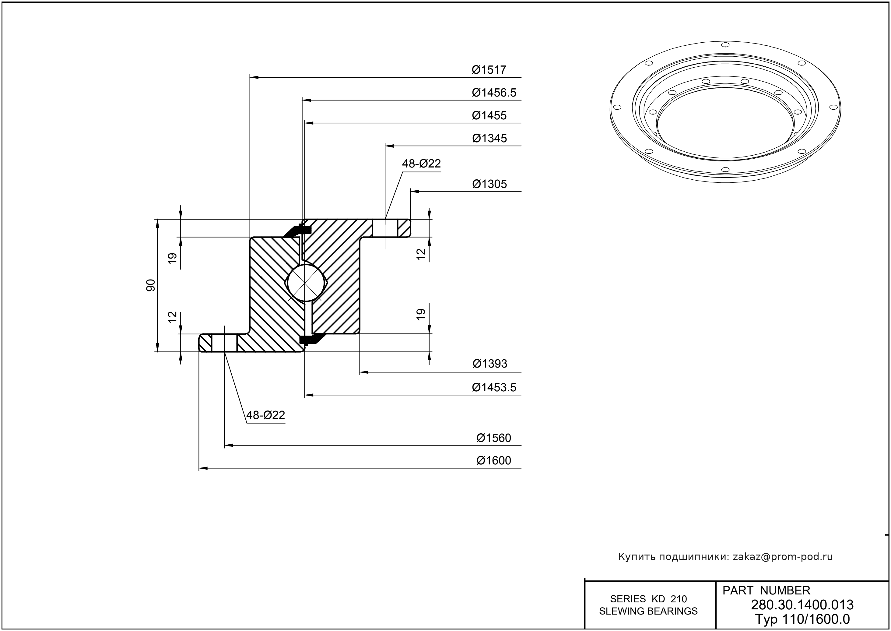 Цена на подшипник 280.30.1400.013 Type 110/1600.0 является расчетной и зависит от следующих факторов: