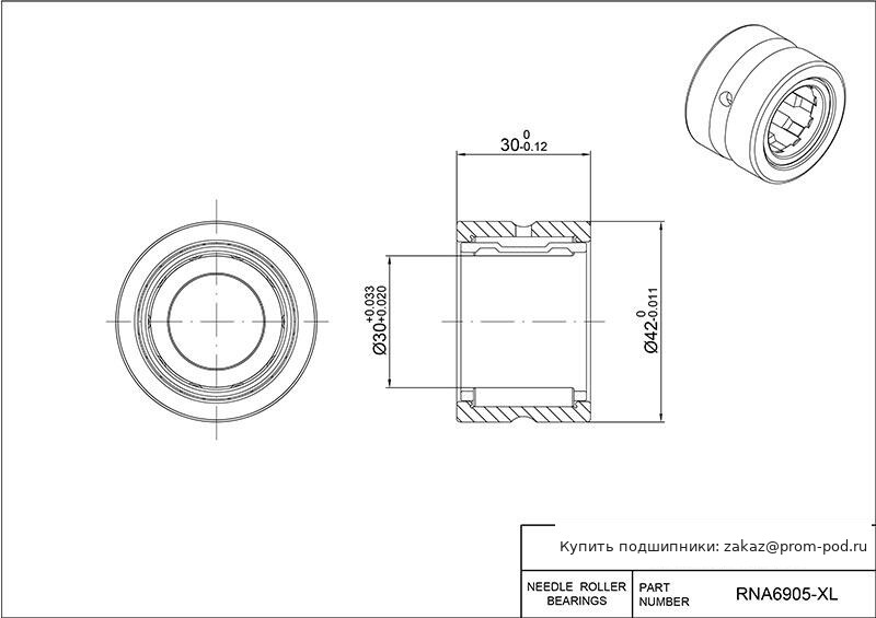 | K30X42X30H | Игольчатый роликовый подшипник | Игольчатый ролик и сепаратор в сборе. Слепое отверстие для штифта в наружном кольце O.D. Опускается, если внутреннее кольцо не поставляется. |