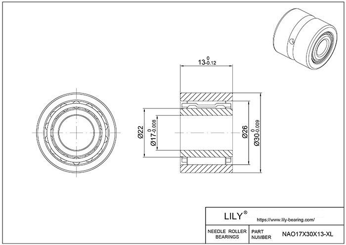 Игольчатый роликоподшипник с механически обработанными кольцами, с бортами и внутренним кольцом. Малошумный. Граничные размеры не соответствуют серии размеров ISO.