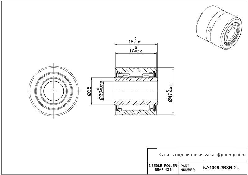 | NAO30X47X18-XL | Игольчатый роликовый подшипник | Малошумный. Граничные размеры не соответствуют серии размеров ISO. |