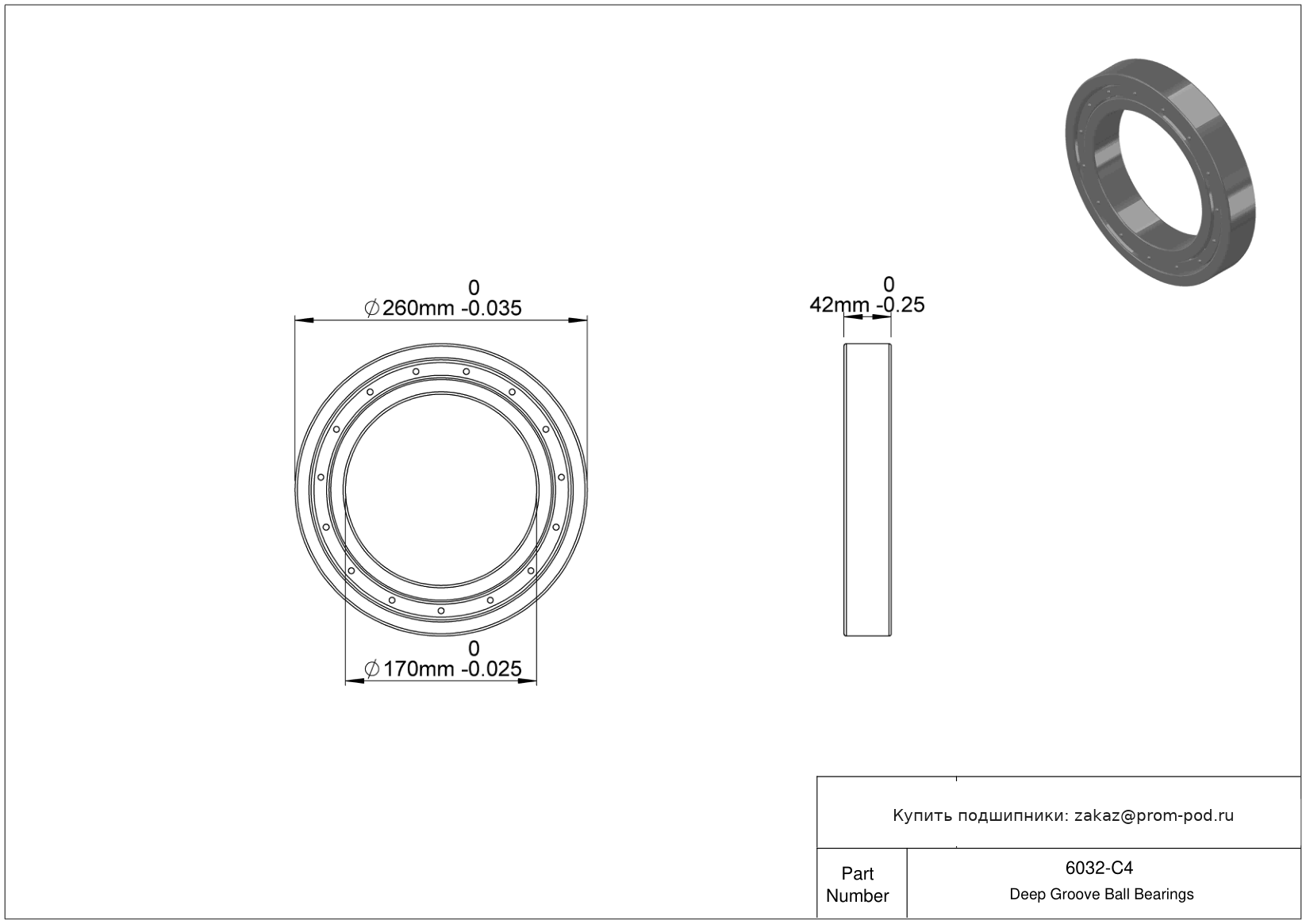 | 6032-2RS-C3 | Шариковый подшипник | Резиновые уплотнения с каждой стороны подшипника. Радиальный зазор больше нормы. |