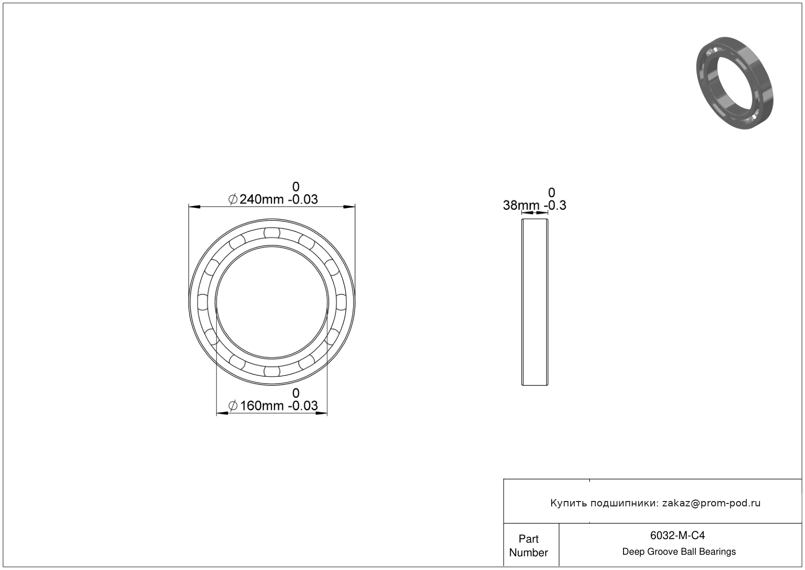 | 6032-2RS-C3 | Шариковый подшипник | Резиновые уплотнения с каждой стороны подшипника. Радиальный зазор больше нормы. |