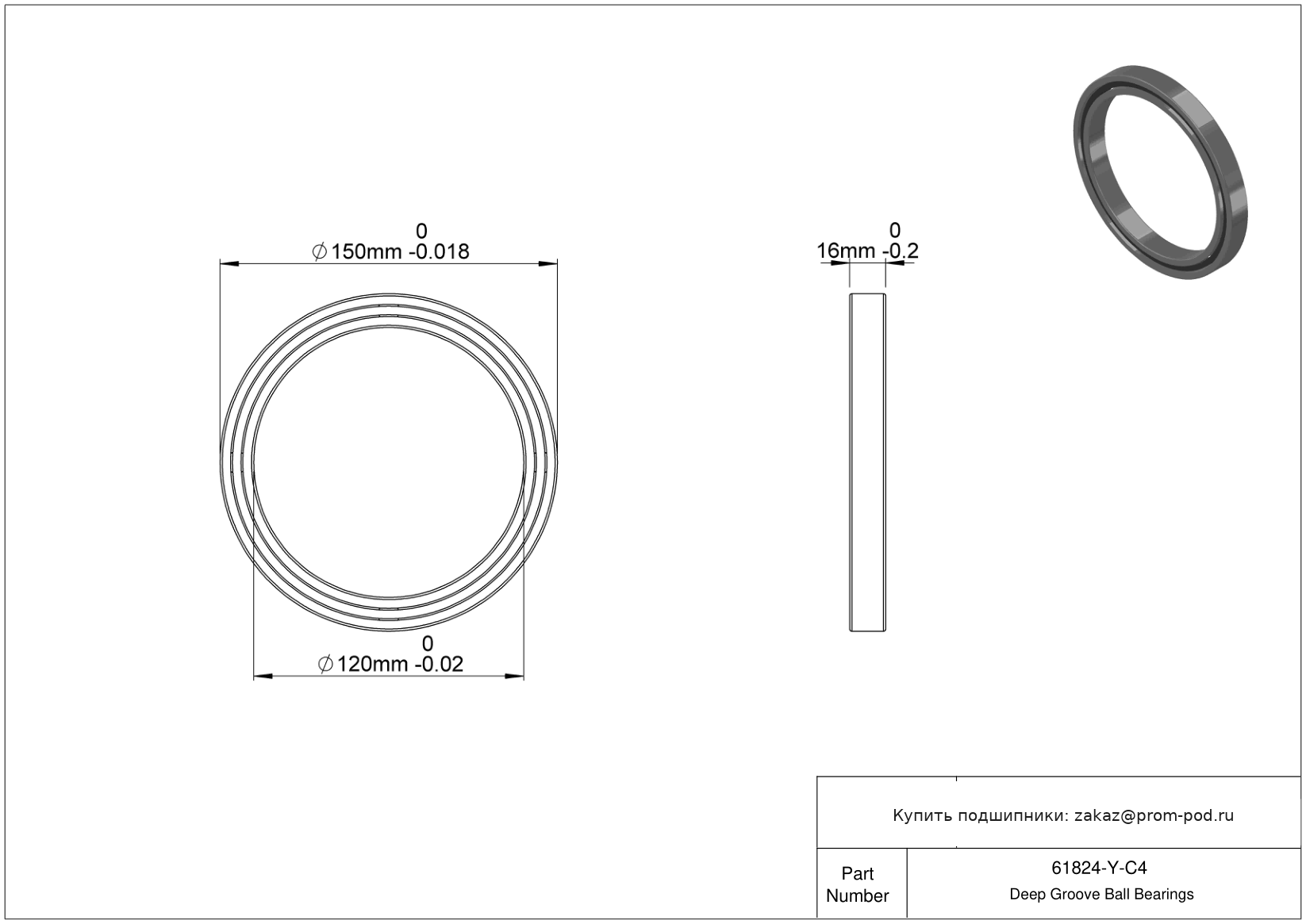 | 6824C4 | Шариковый подшипник | Внутренний зазор больше С3. |