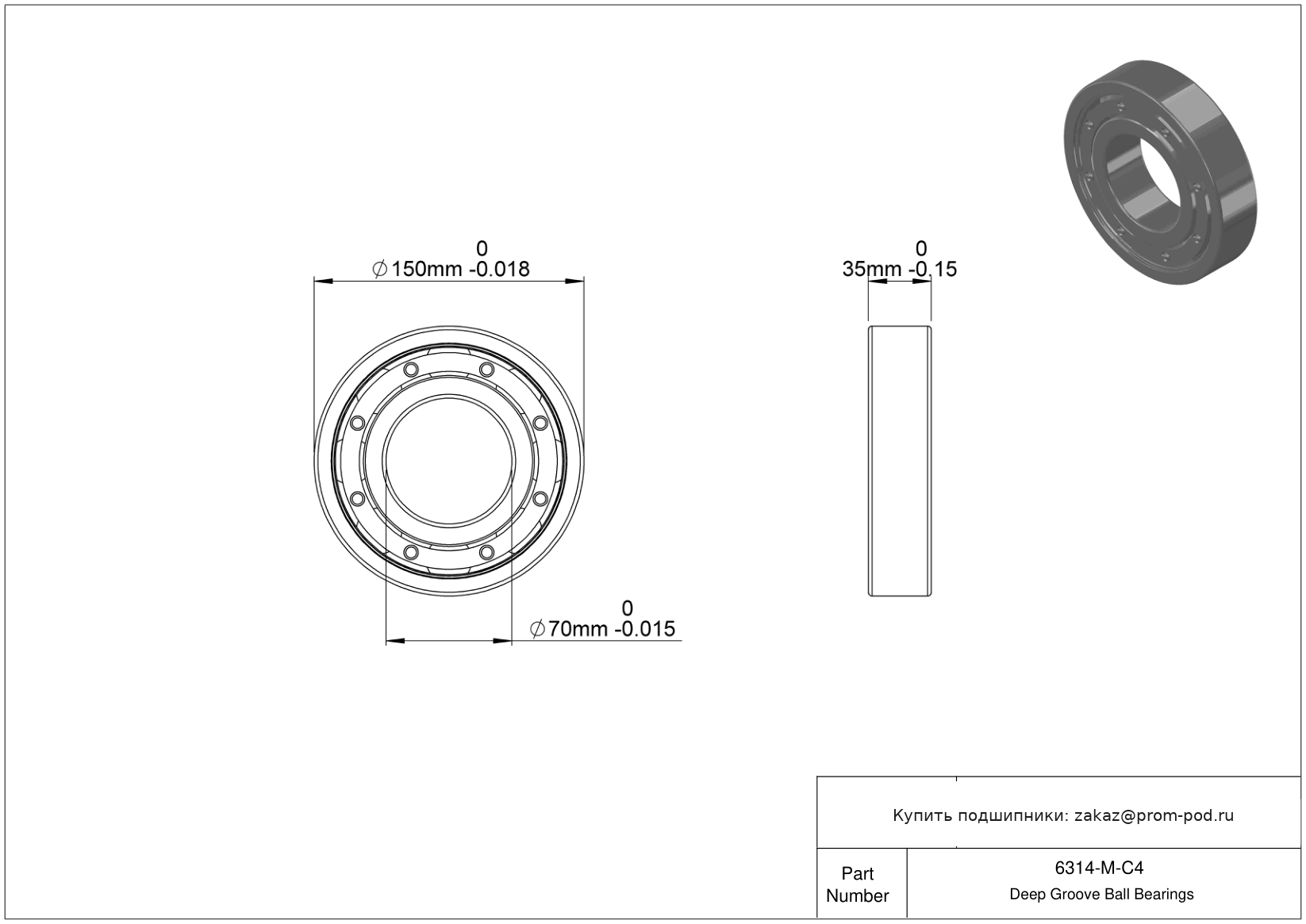 | 314NPP | Шариковый подшипник | Уплотнение с двух сторон. Одинарные манжетные уплотнения - стандарт. |