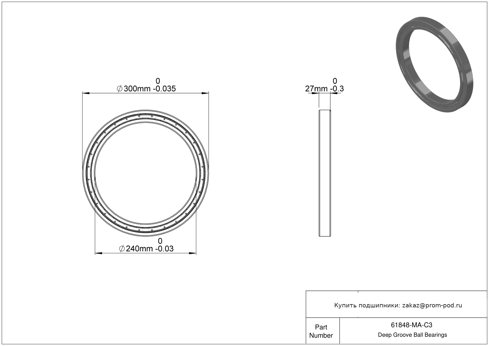 | 6848MC3 | Шариковый подшипник | Радиальный зазор 5-10 µm. |