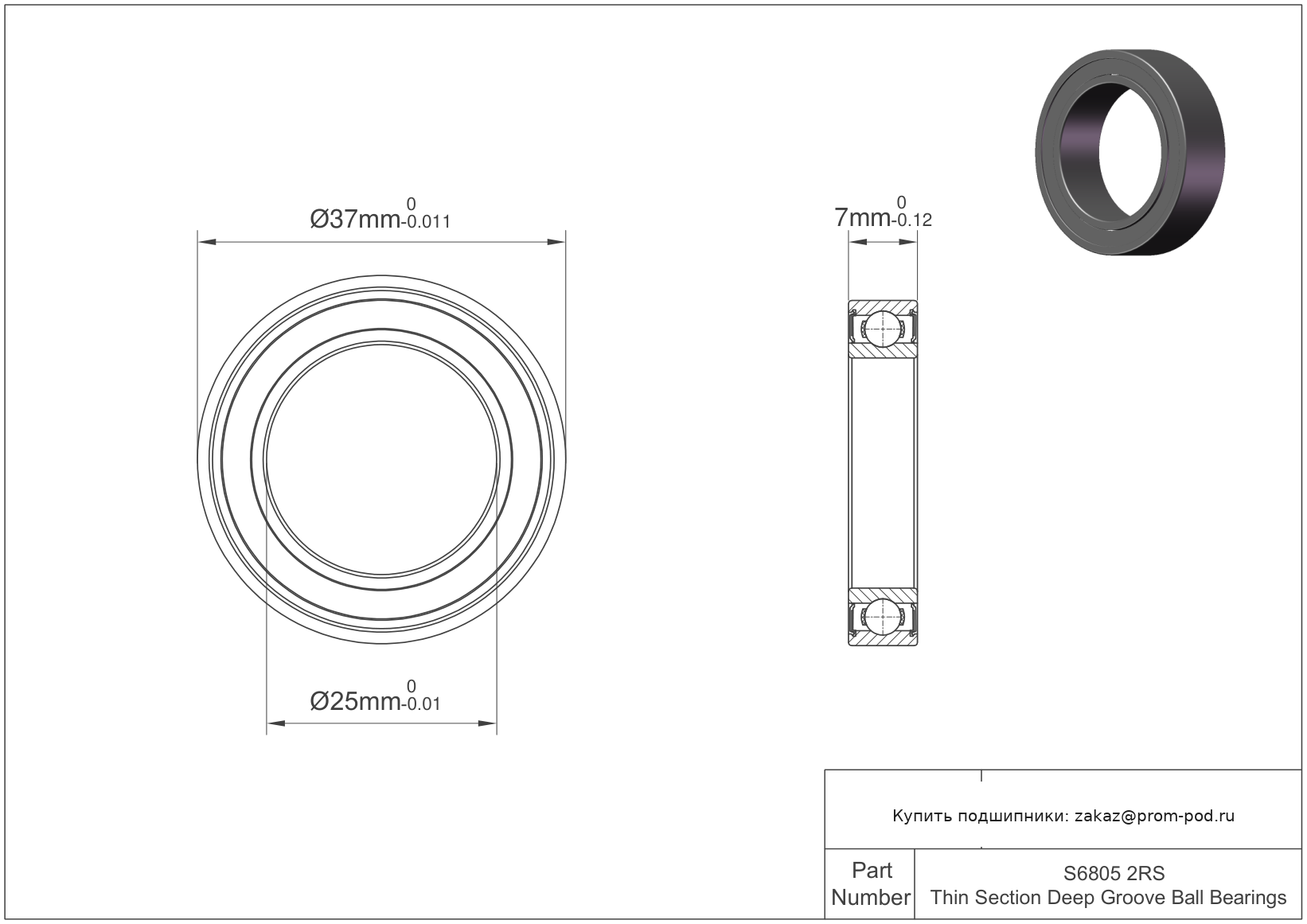 Угол контакта 25 градусов. Нормальный радиальный зазор, не маркируется. Точность по классу допуска ISO 6. Массивный сепаратор из нержавеющей стали.
