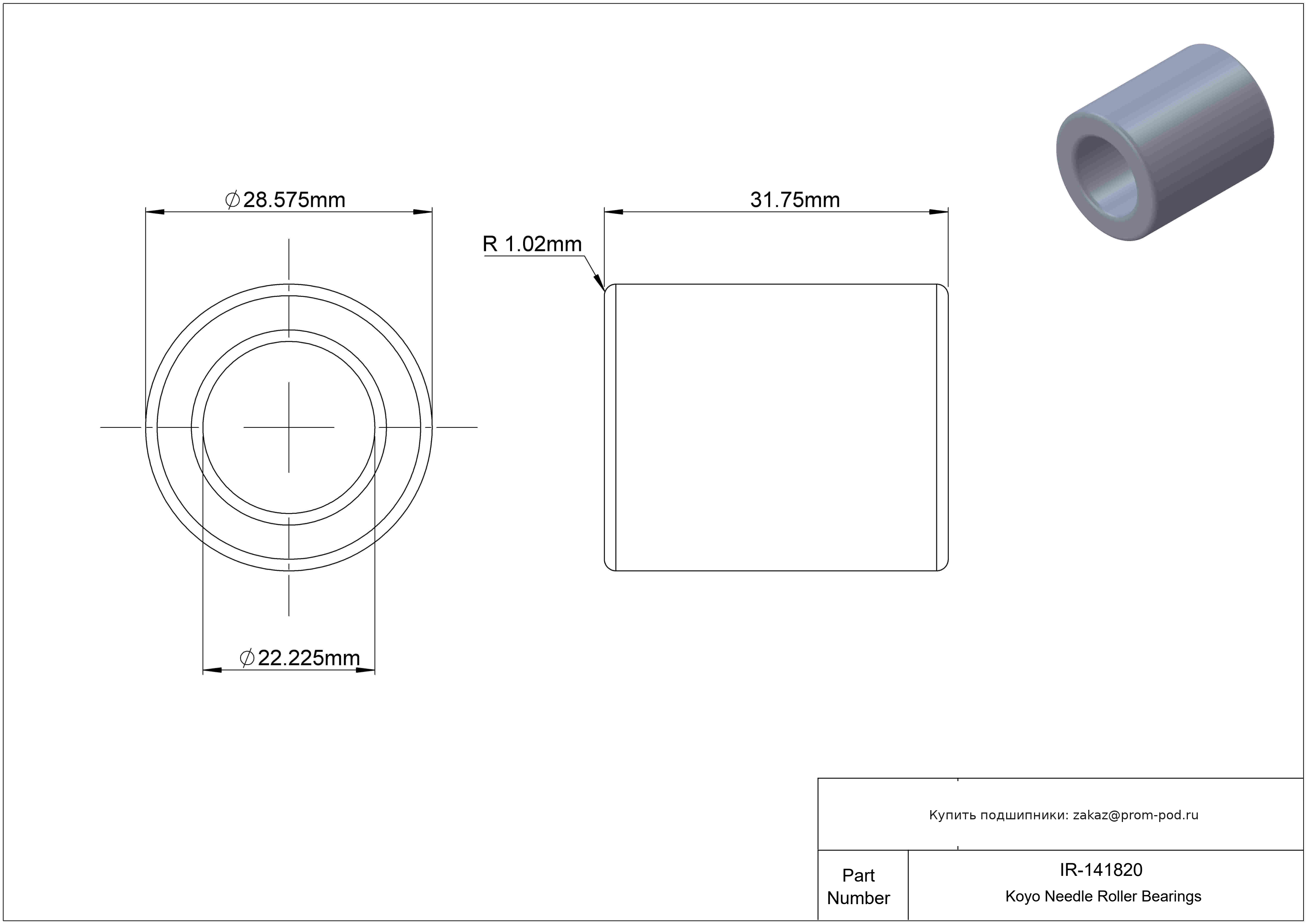 Цена на подшипник IR-141820 является расчетной и зависит от следующих факторов: