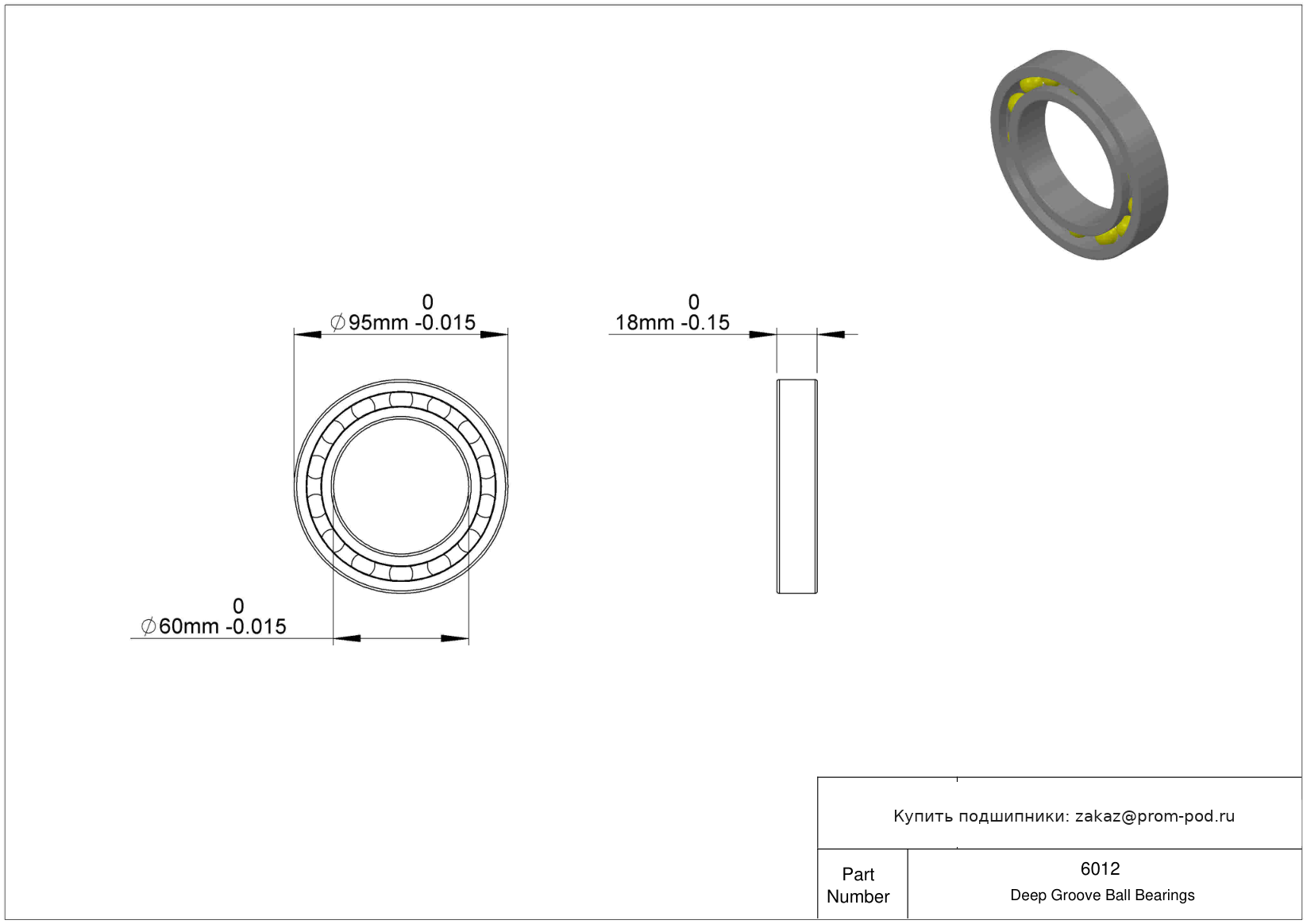 | 6012-Z-C3 | Шариковый подшипник | Внутренний зазор больше нормального. Подшипник с защитной шайбой с одной стороны. |