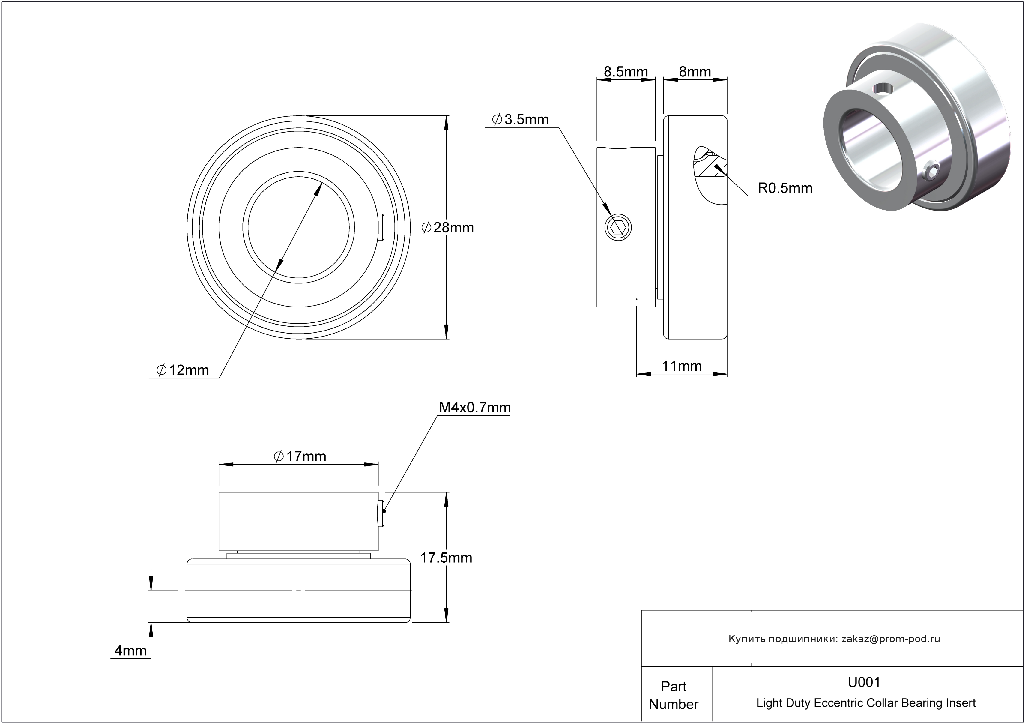 Цена на подшипник U001 является расчетной и зависит от следующих факторов: