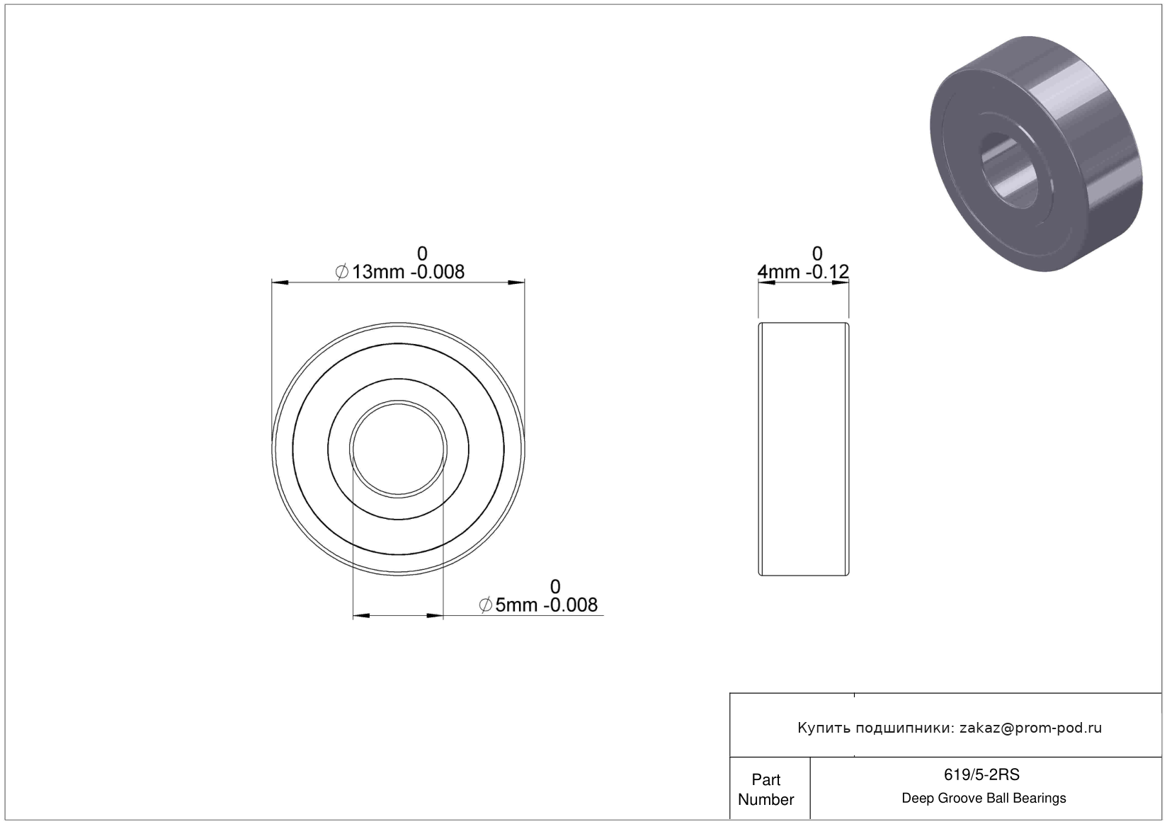 | 619/5-2RZ | Шариковый подшипник | |