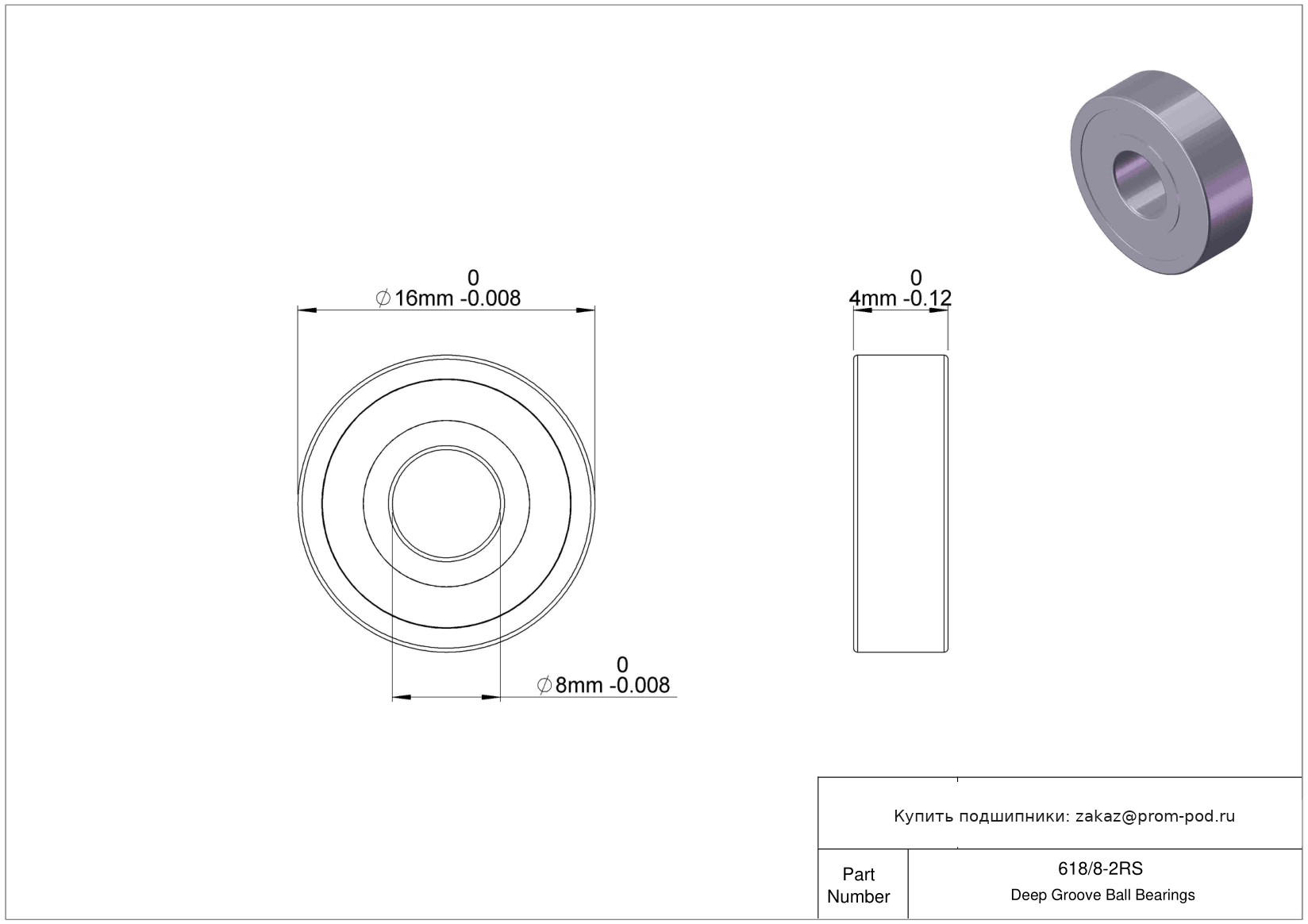 | 618/8H-2RS/F | Шариковый подшипник | |
