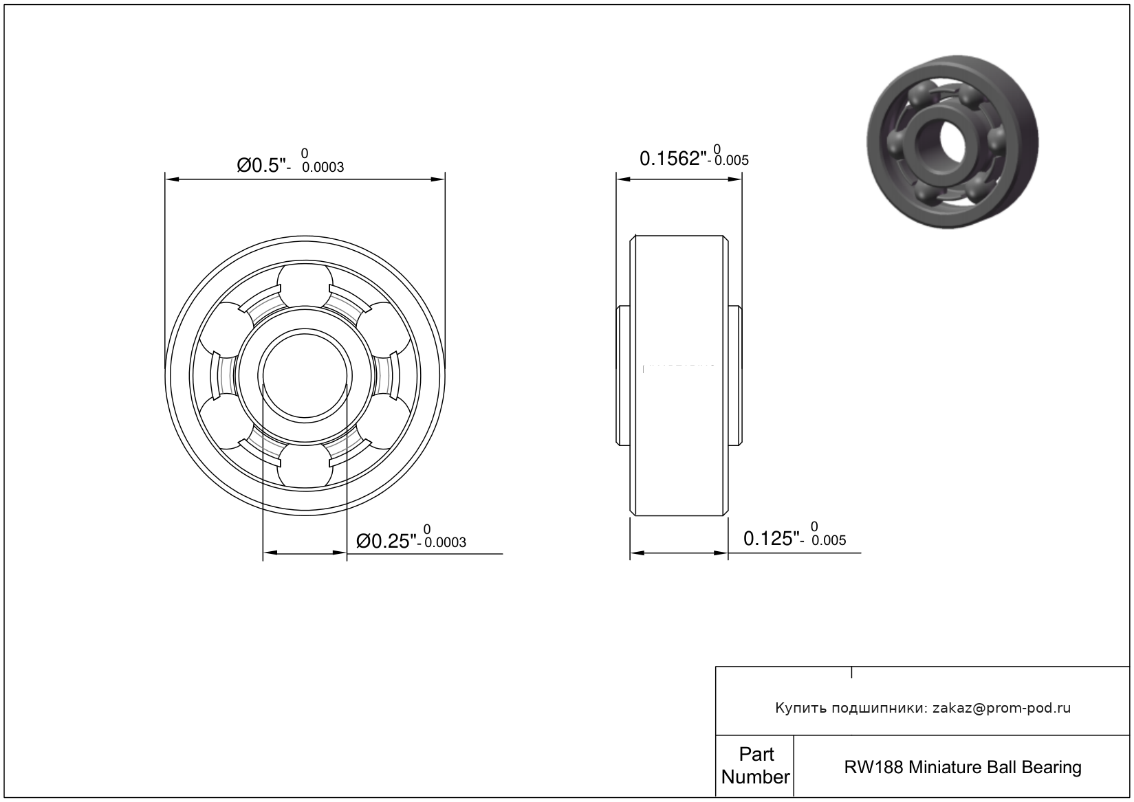 | D/W R188 | Шариковый подшипник | Дорожки качения/Шарики: AISI 52100 сталь. Защитная шайба с одной стороны. |
