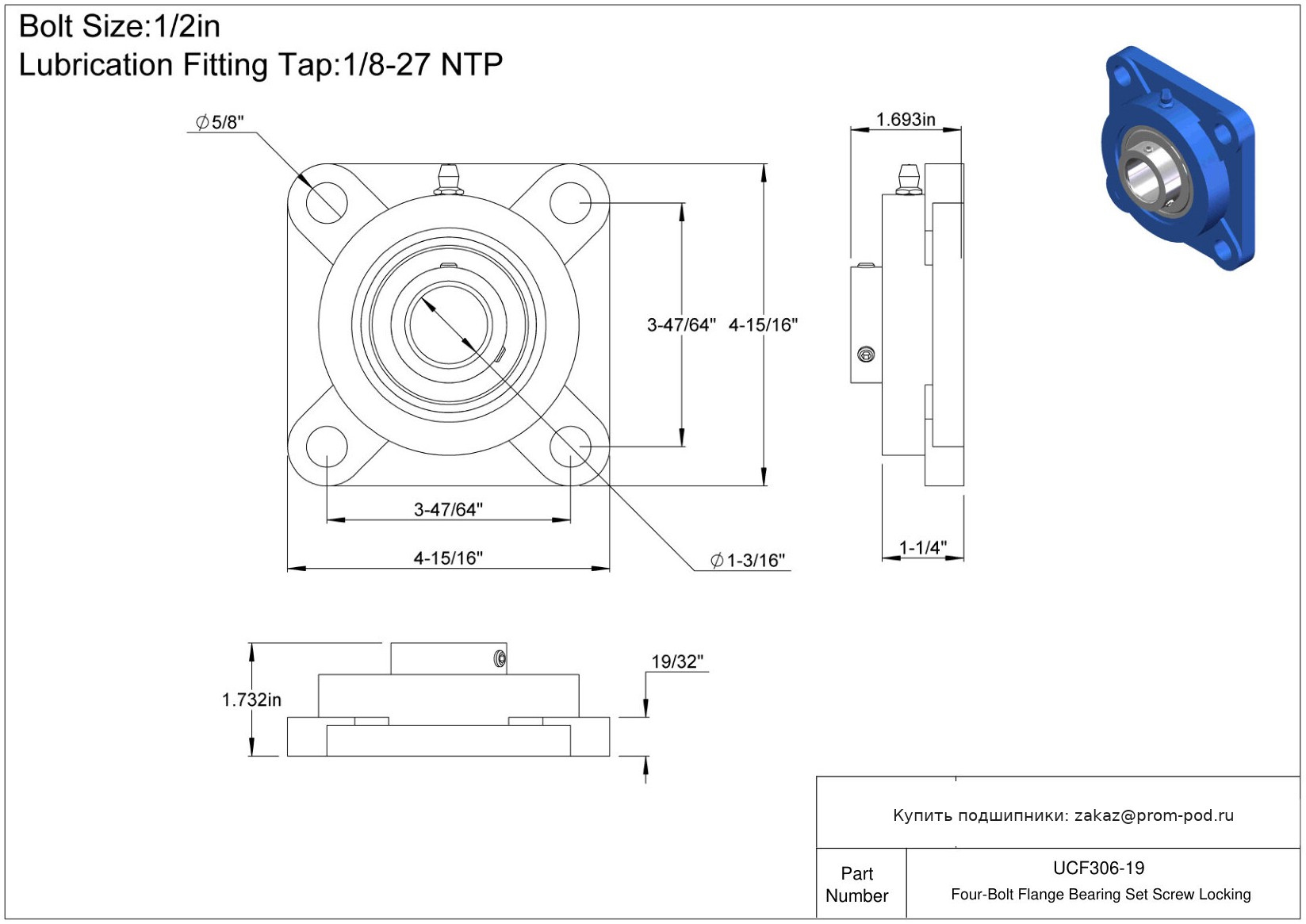 Цена на подшипник UCF306-19 является расчетной и зависит от следующих факторов: