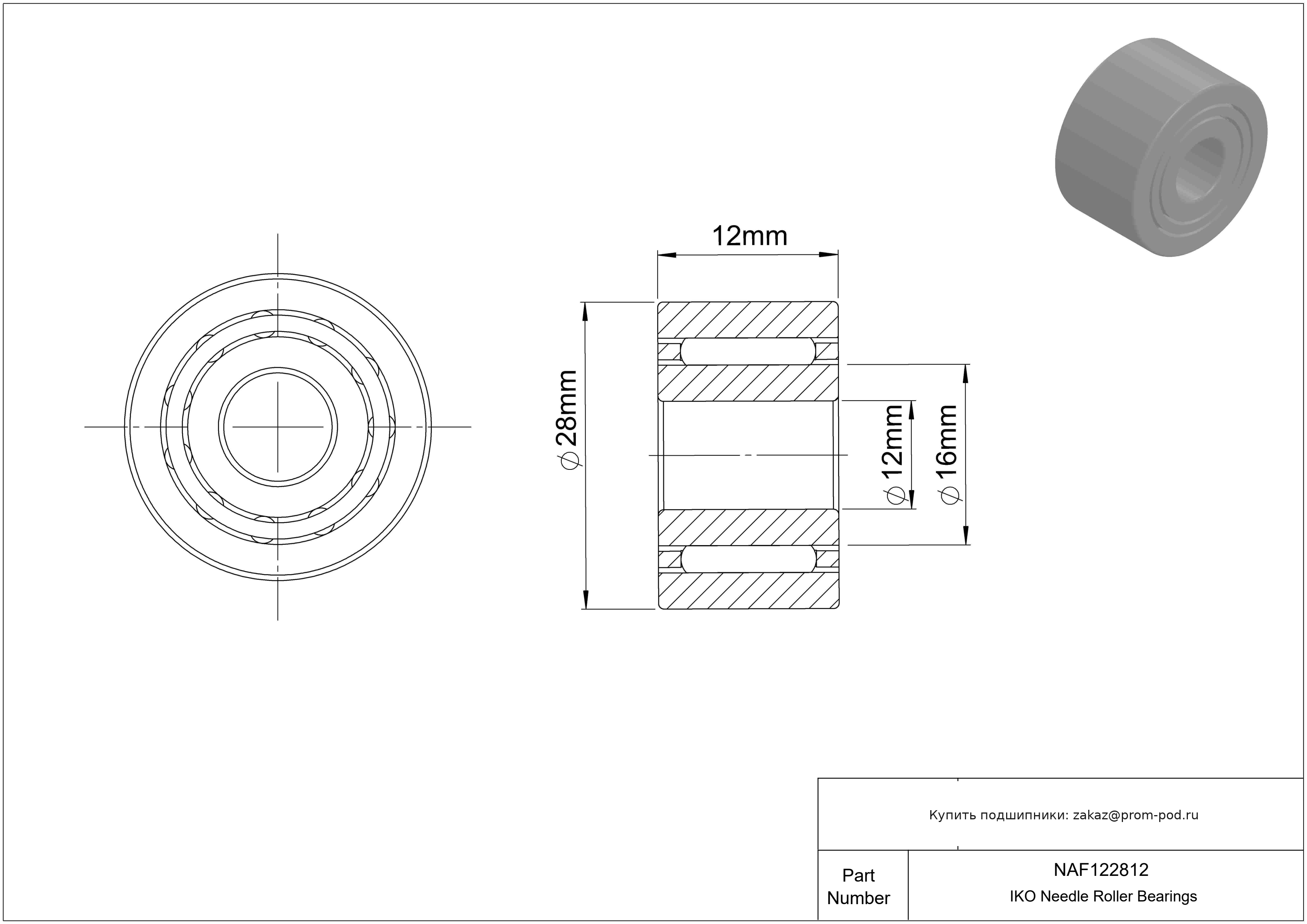 | NAO12X28X12-IS1-XL | Игольчатый роликовый подшипник | Смазочное отверстие во внутреннем кольце, в зависимости от размера подшипника. Малошумный. Граничные размеры не соответствуют серии размеров ISO. |