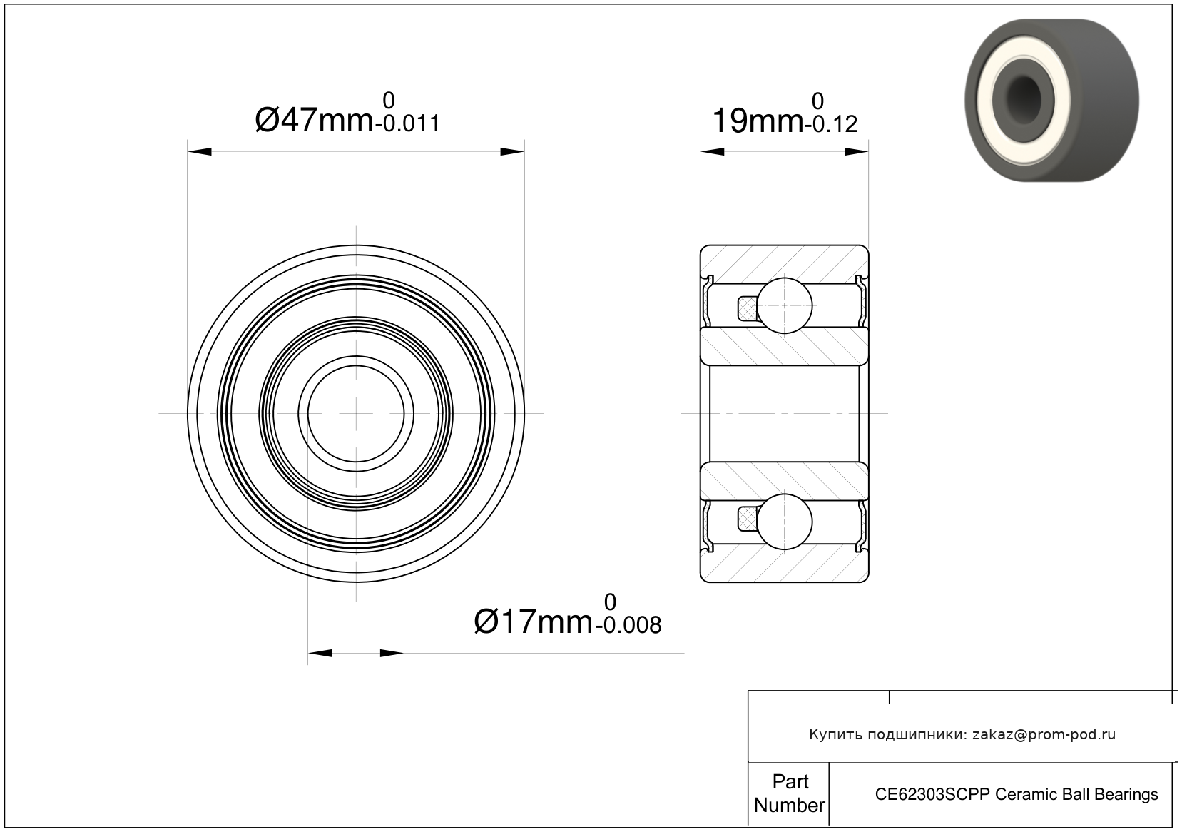 Керамическими шариковый подшипник армированный цирконием. Контактное уплотнение с двух сторон.