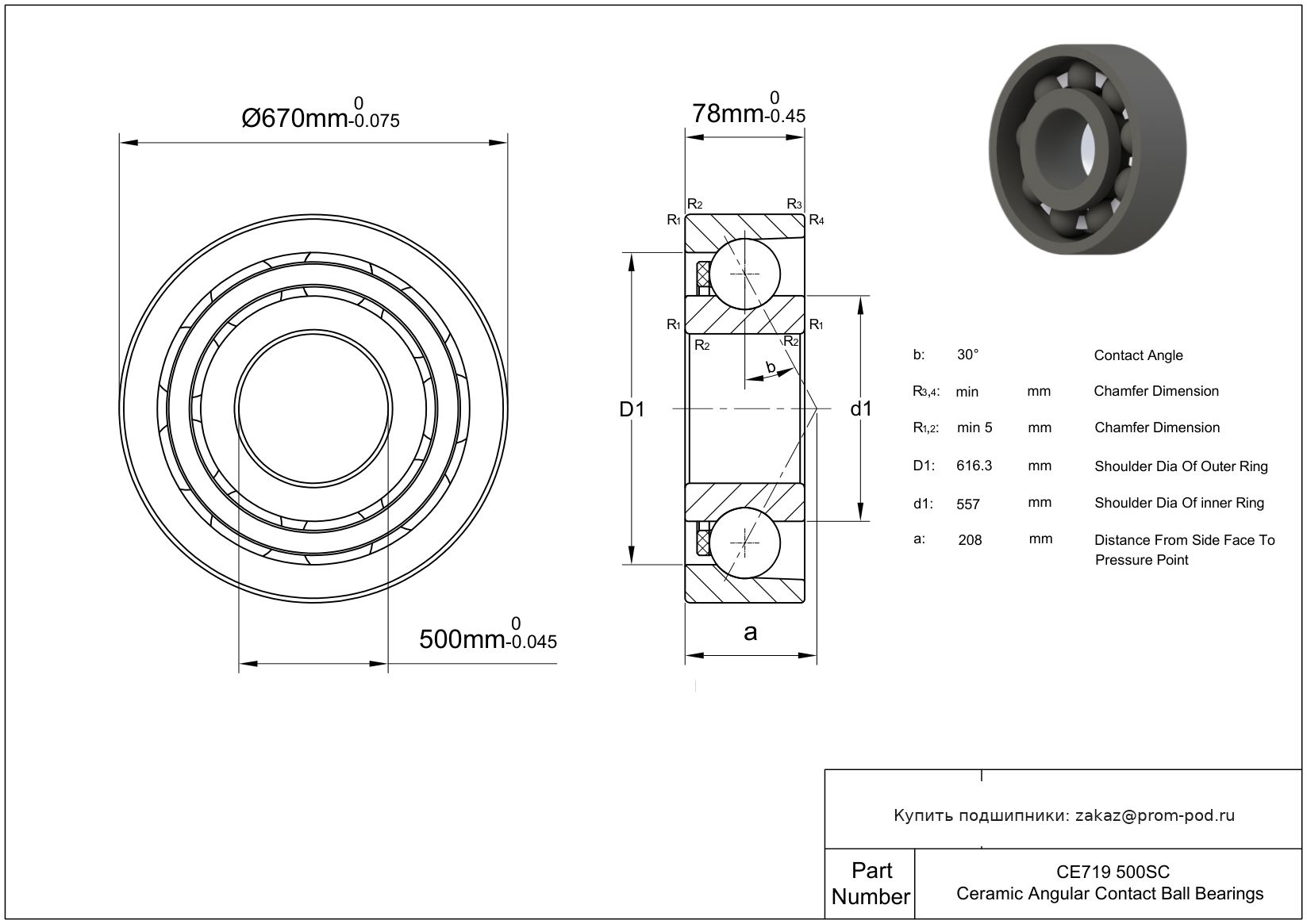 | SS719/500 | Радиально-упорный шариковый подшипник | |