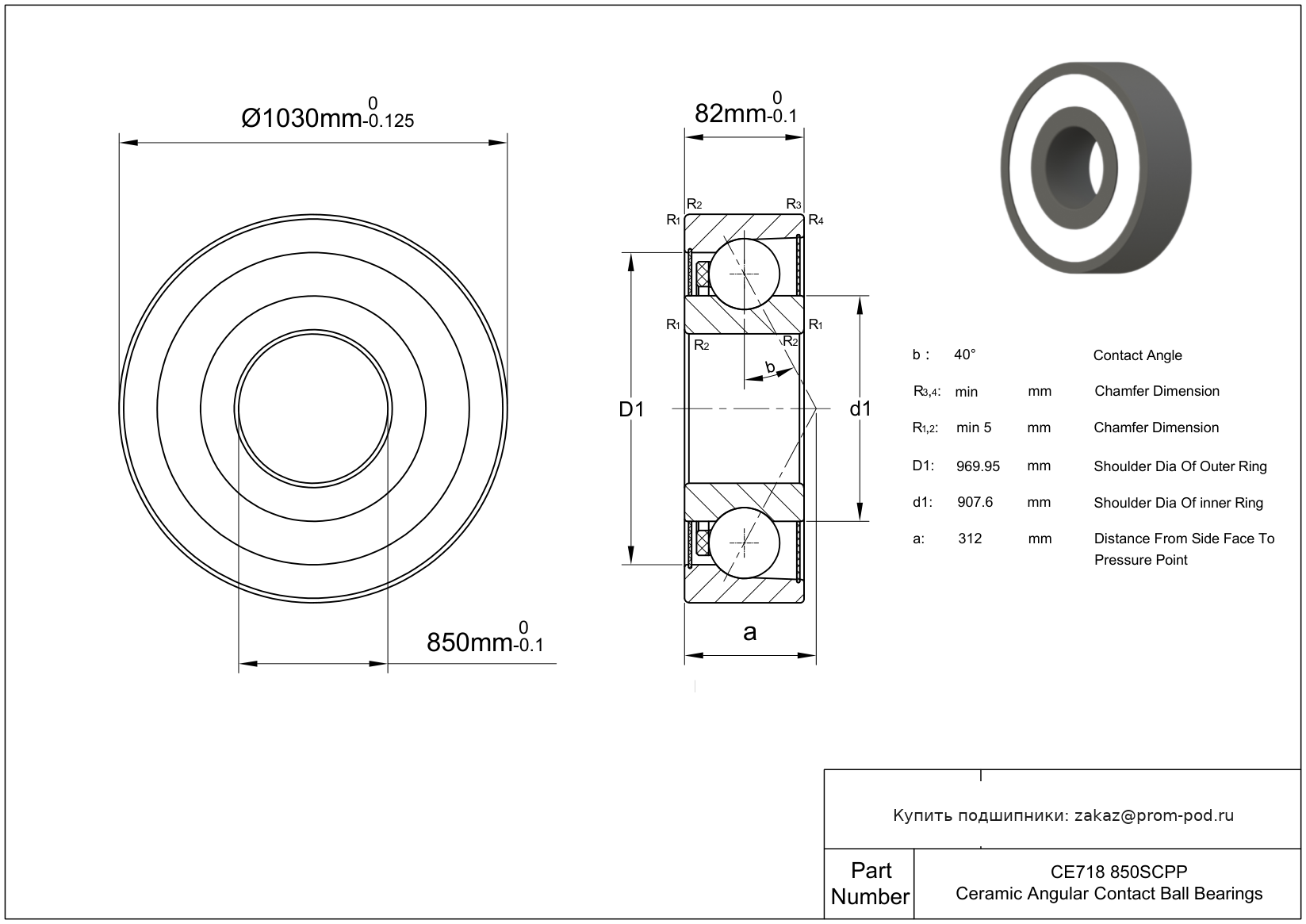 | SS718/850 | Радиально-упорный шариковый подшипник | |