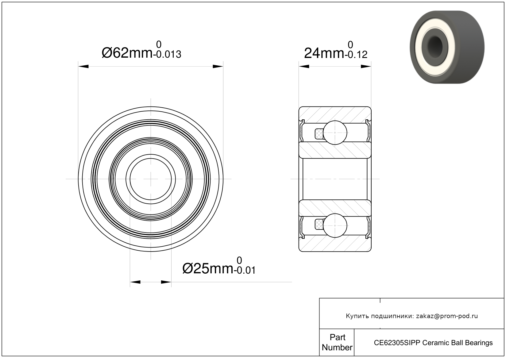 Керамическими шариковый подшипник армированный цирконием. Контактное уплотнение с двух сторон.