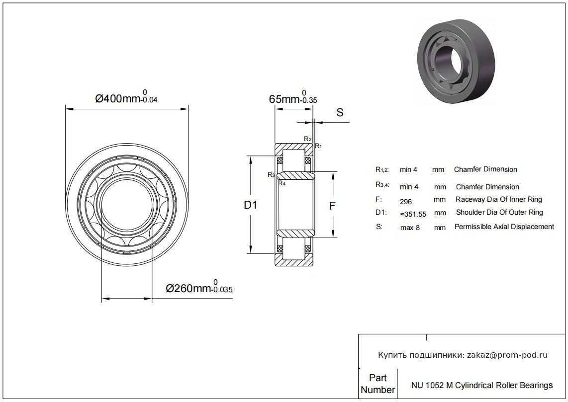 Цена на подшипник NU 1052 M является расчетной и зависит от следующих факторов:
