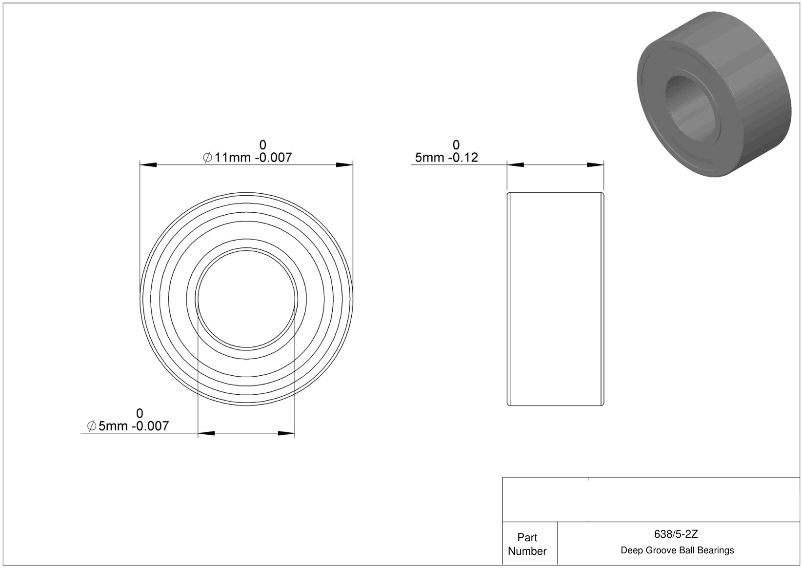 Шариковый упорный подшипник, однорядный. Однонаправленный, с рифленой поверхностью качения. Легкая дюймовая серия. Защитная шайба с обеих сторон. Двухрядный шарикоподшипник радиального типа без слота для ввода шариков с литым бронзовым сепаратором пальцевого типа. Углы контакта 0°.