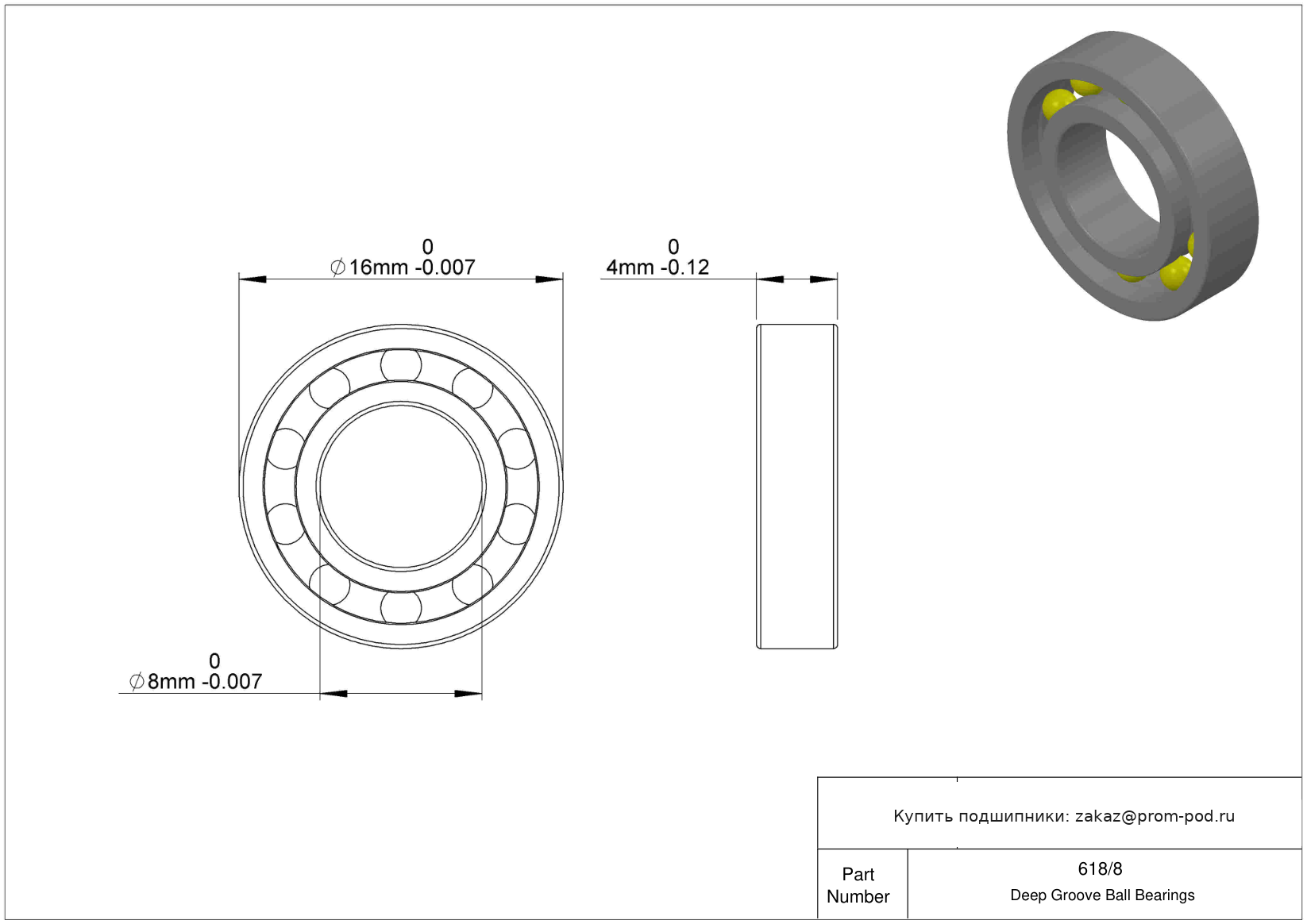 | 618/8-2RS | Шариковый подшипник | Уплотнение с обеих сторон, NBR. |
