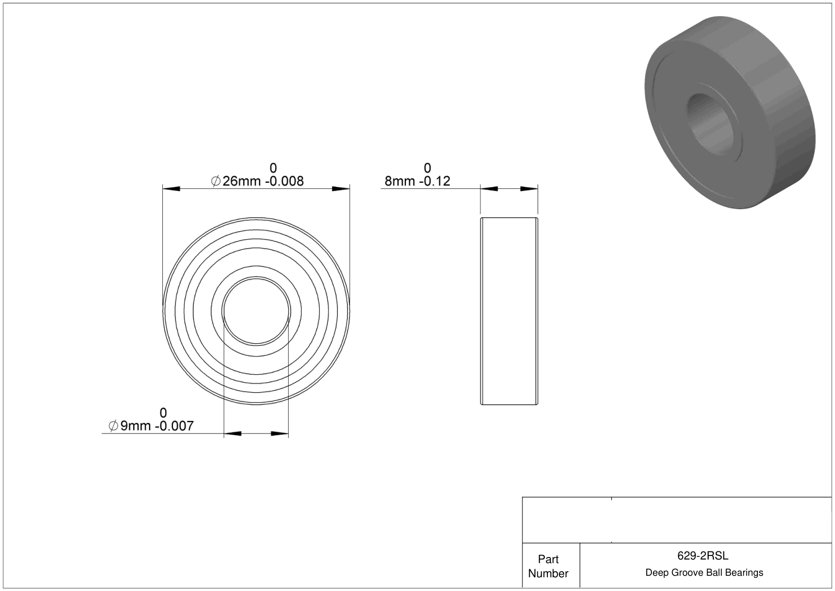 Шарики и кольца из материала AISI 440C. Два уплотнителя из синтетического каучука.