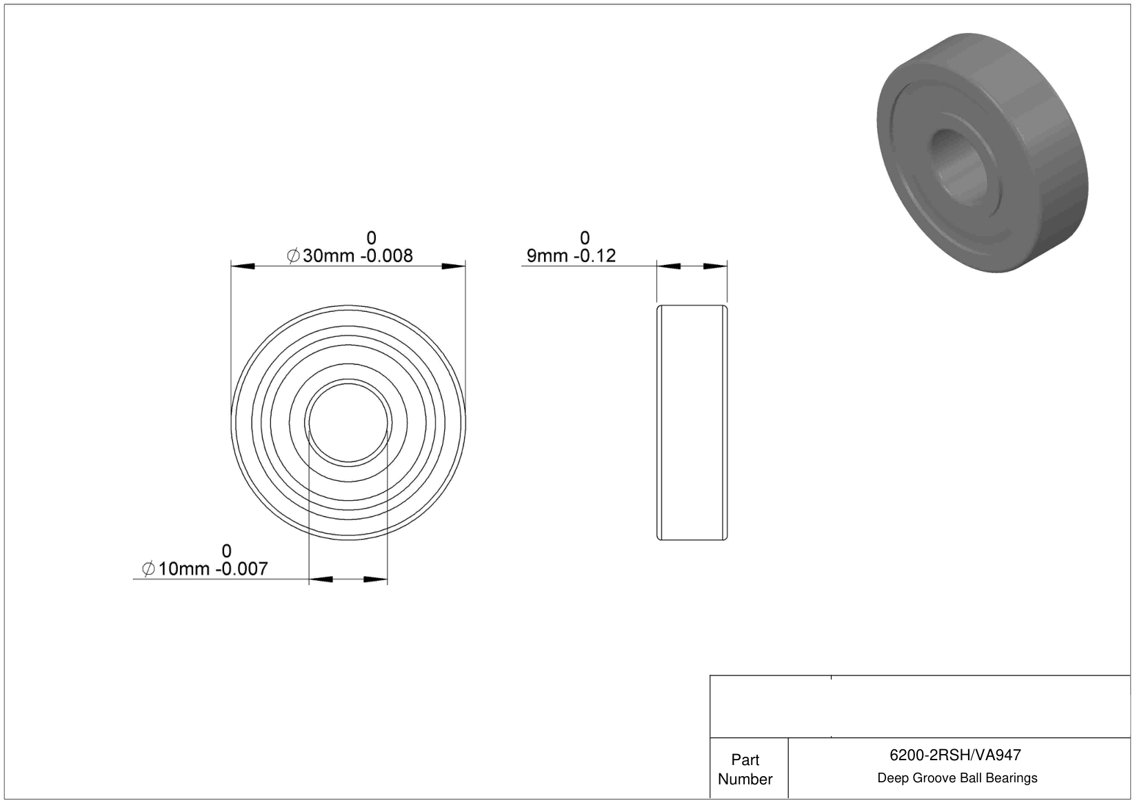 Шарики и кольца из материала AISI 440C. Два уплотнителя из синтетического каучука.