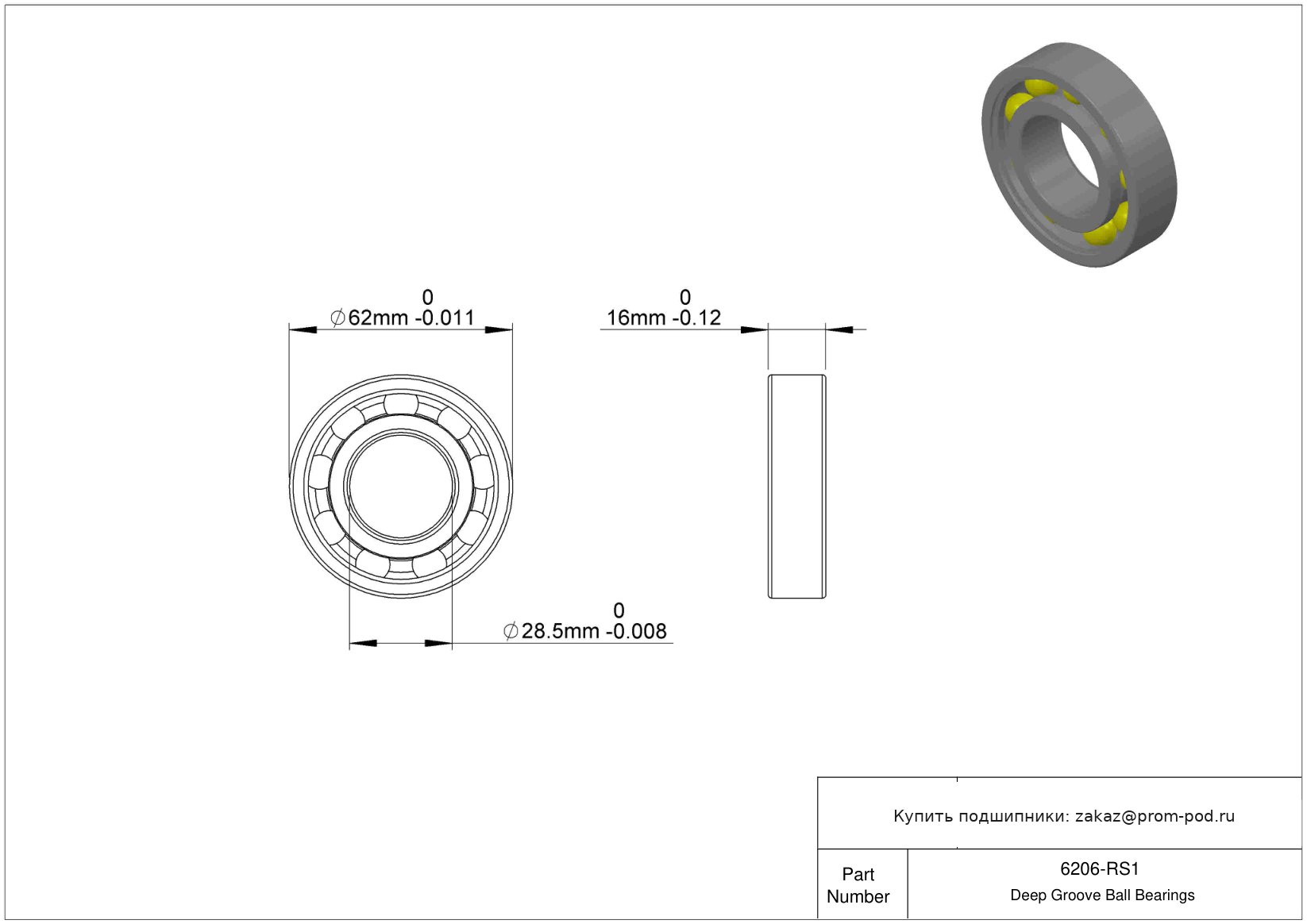 Цена на подшипник 6206-RS1 является расчетной и зависит от следующих факторов: