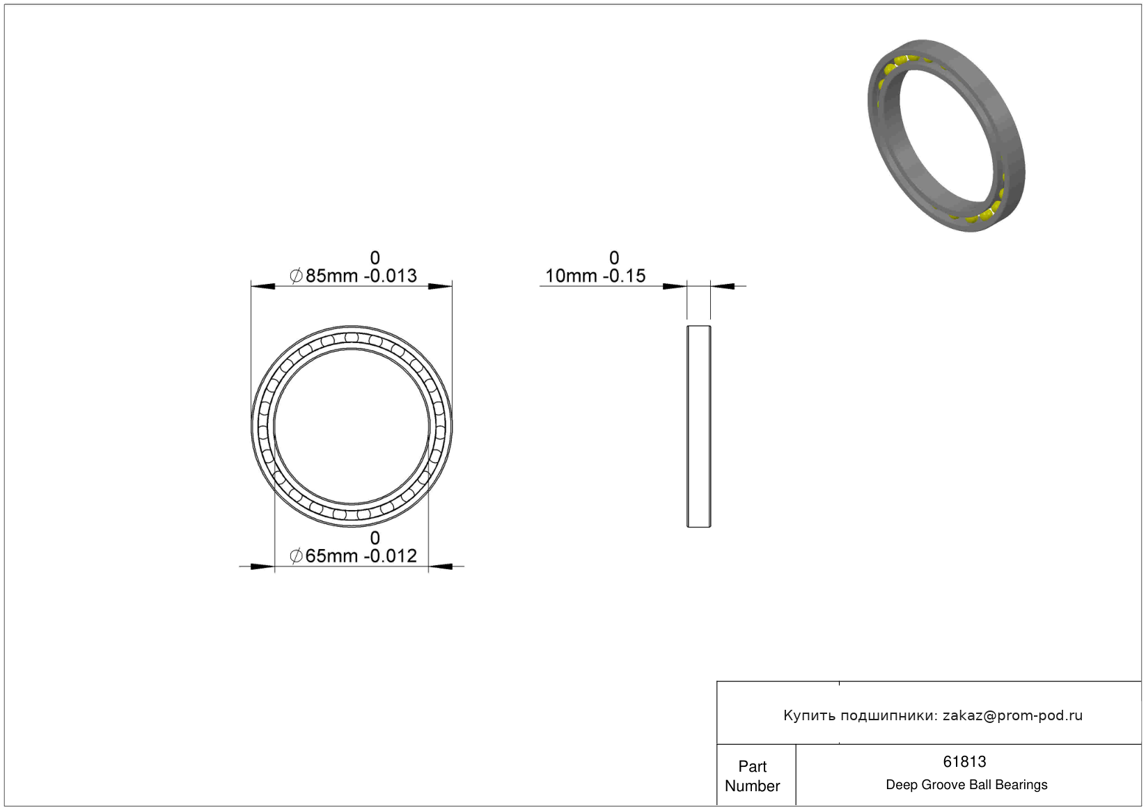 | 6813 | Шариковый подшипник | |