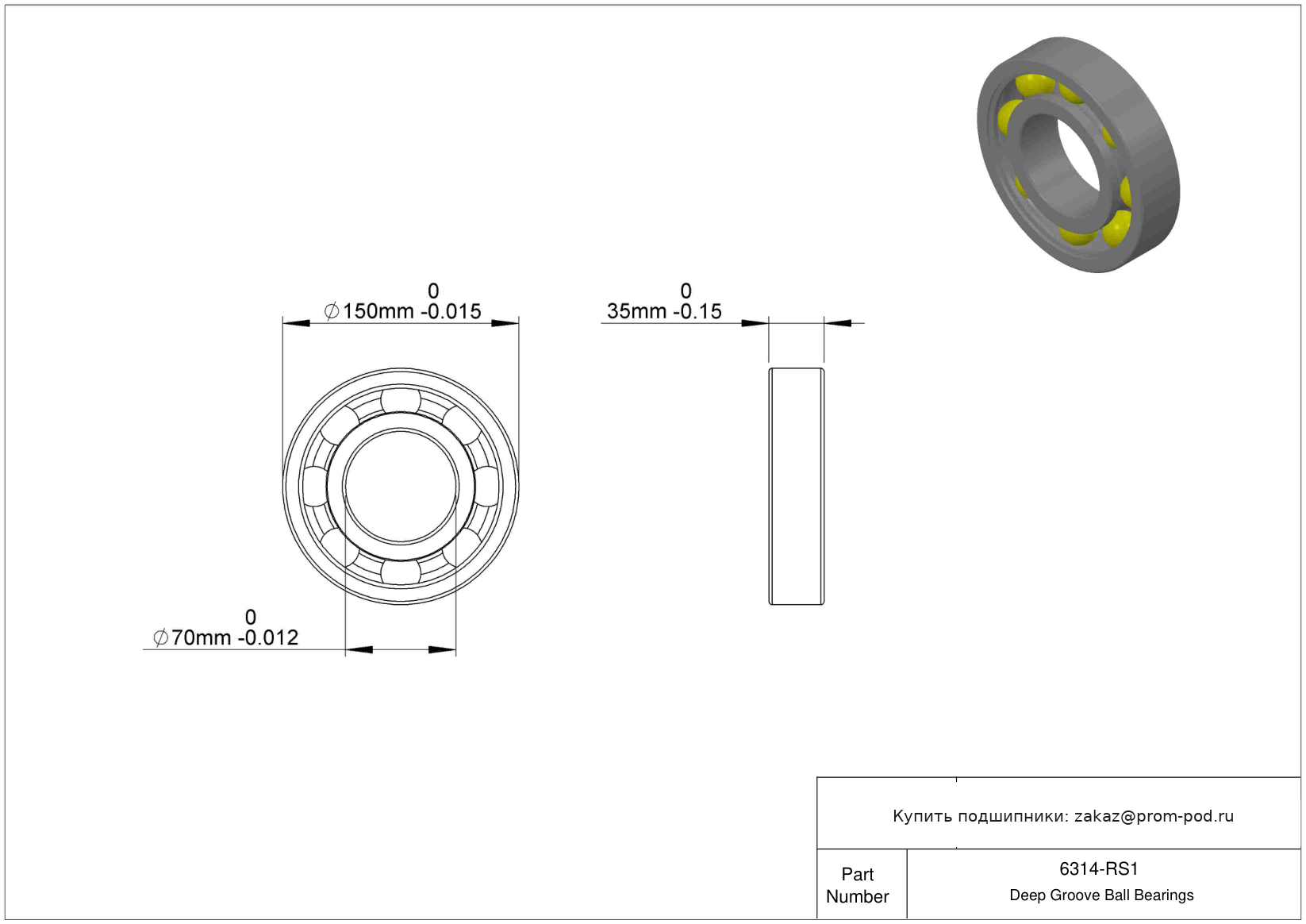 | 314NPP | Шариковый подшипник | Уплотнение с двух сторон. Одинарные манжетные уплотнения - стандарт. |