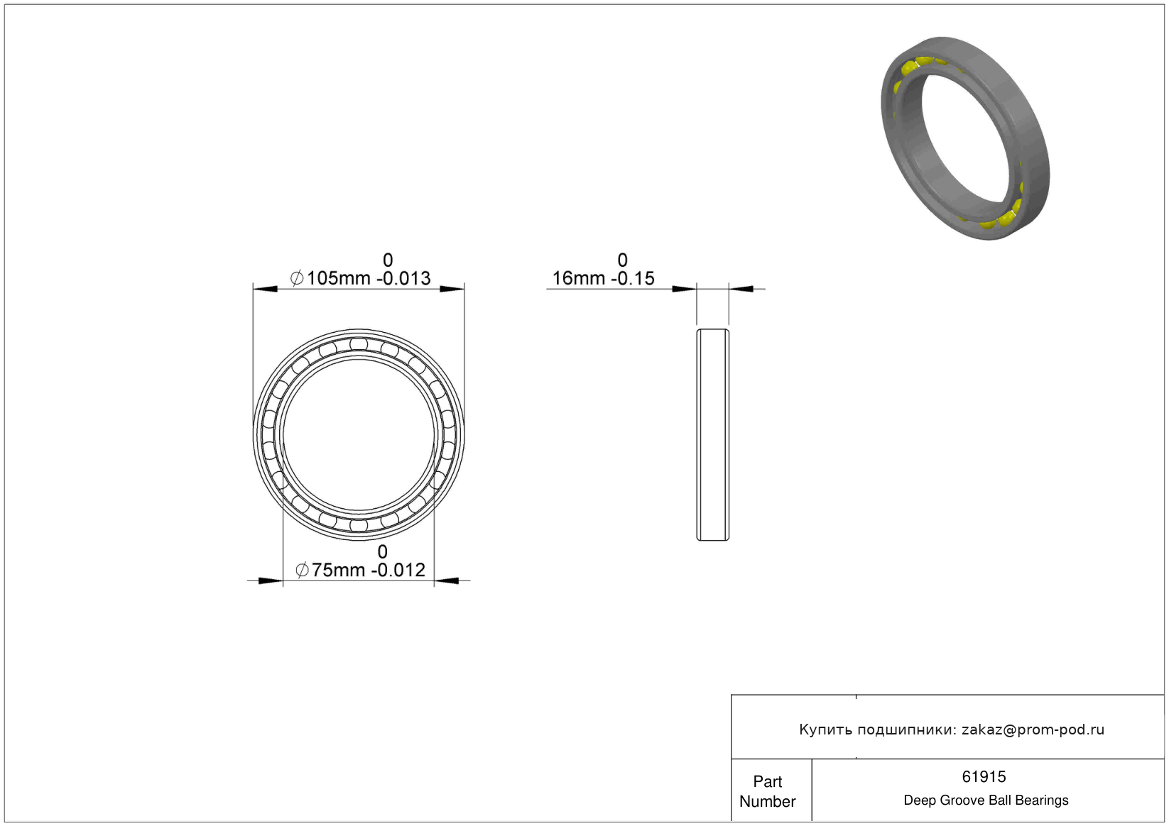 | 6915zz | Шариковый подшипник | Два уплотнителя из синтетического каучука. |