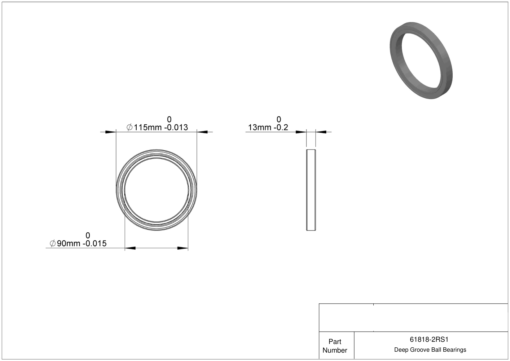| 6818 2RS | Шариковый подшипник | Уплотнение с обеих сторон, NBR. |