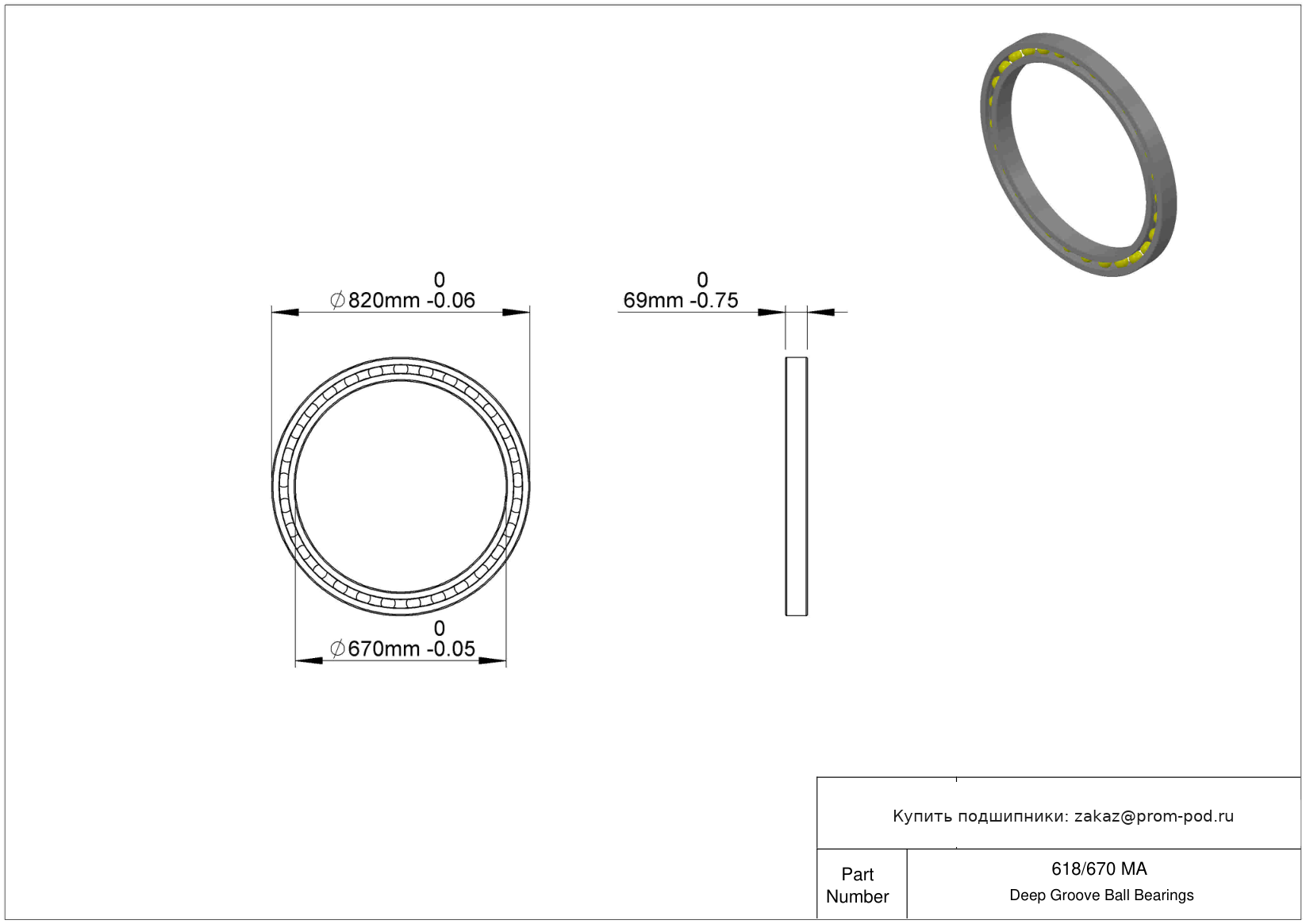 | 68/670MC3 | Шариковый подшипник | Радиальный зазор 5-10 µm. |