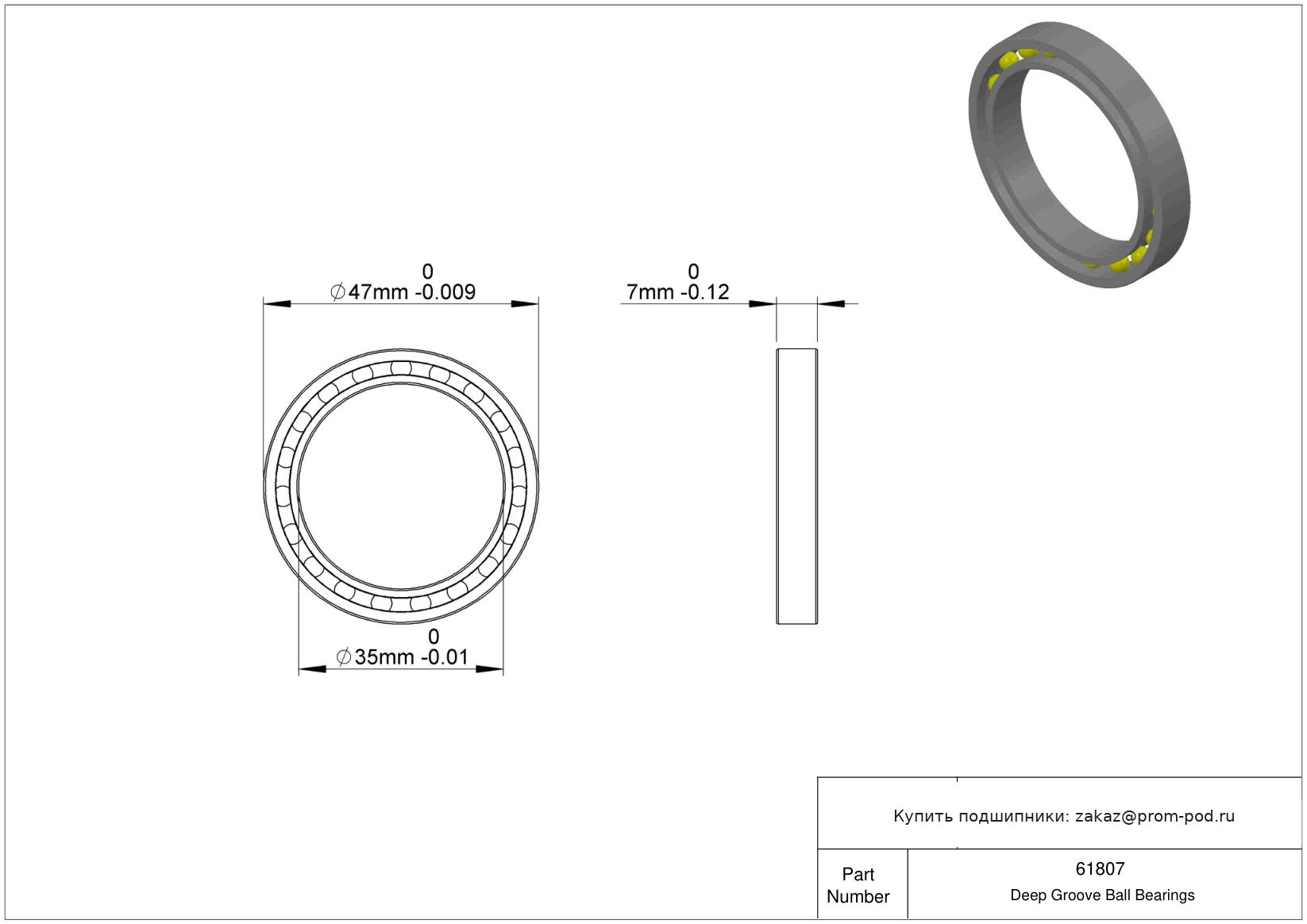 | 6807 2RU | Шариковый подшипник | Бесконтактное уплотнение с двух сторон. |