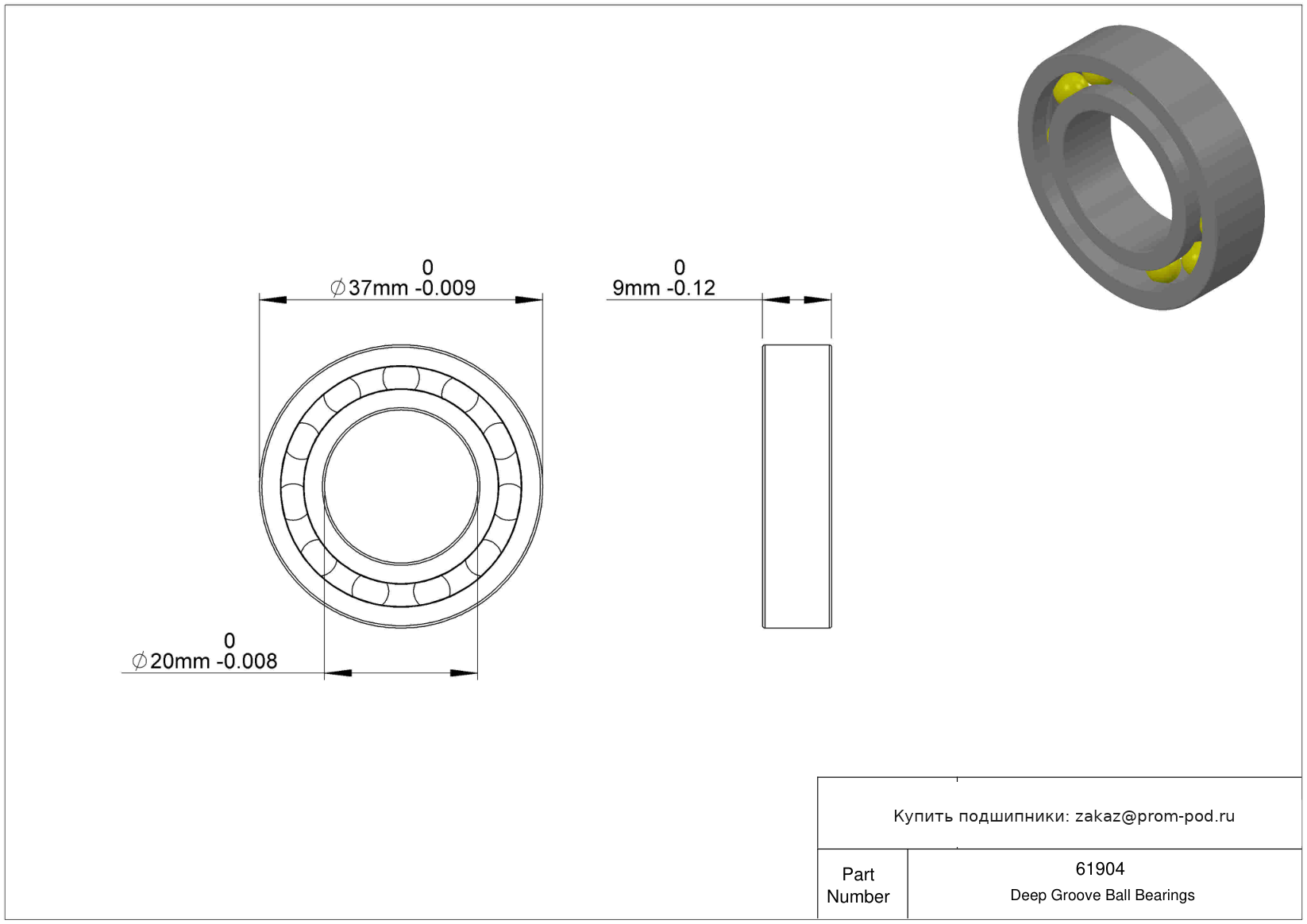 | 6904 2RS | Шариковый подшипник | Уплотнение с обеих сторон, NBR. |