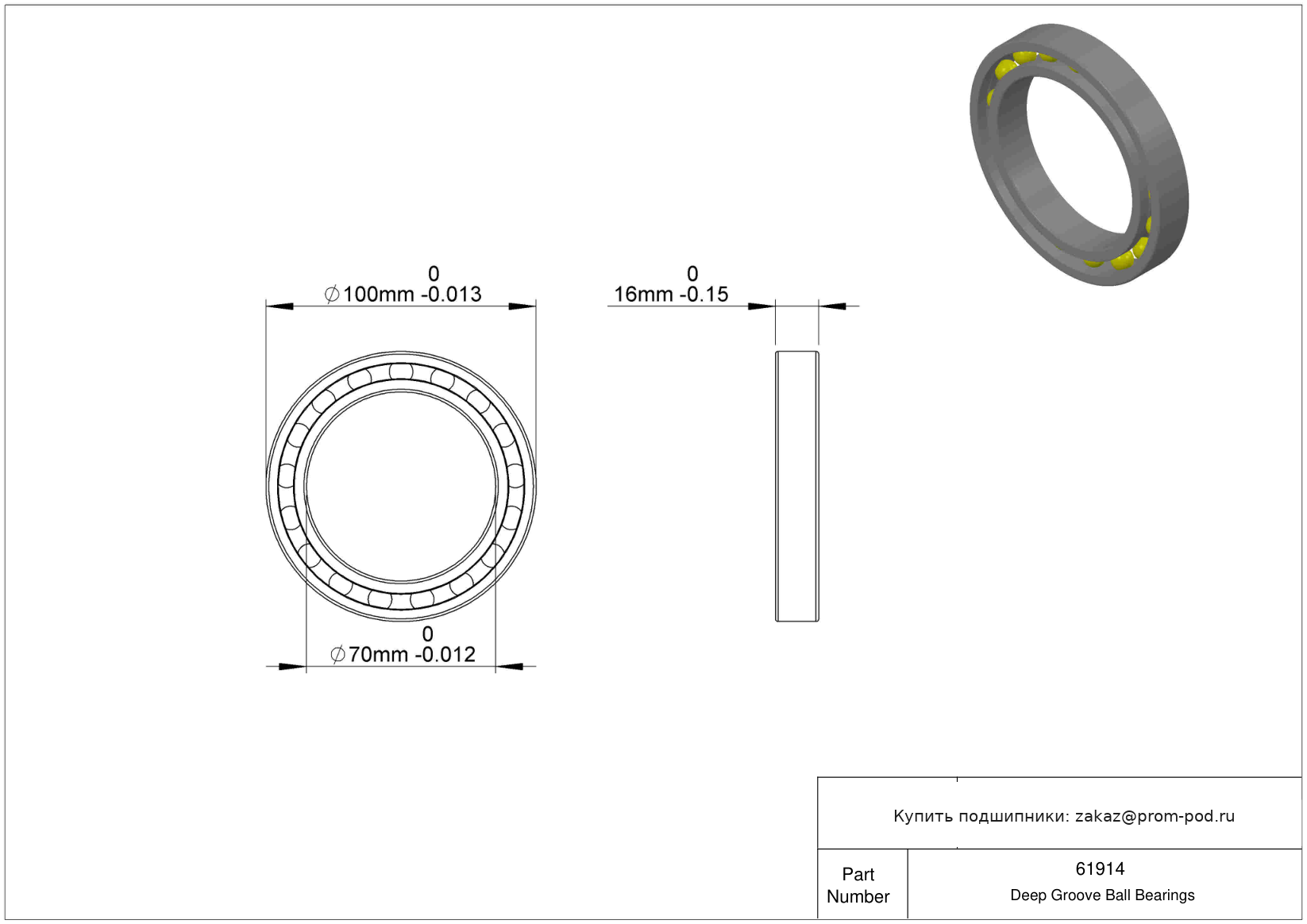 | 6914zz | Шариковый подшипник | Два уплотнителя из синтетического каучука. |
