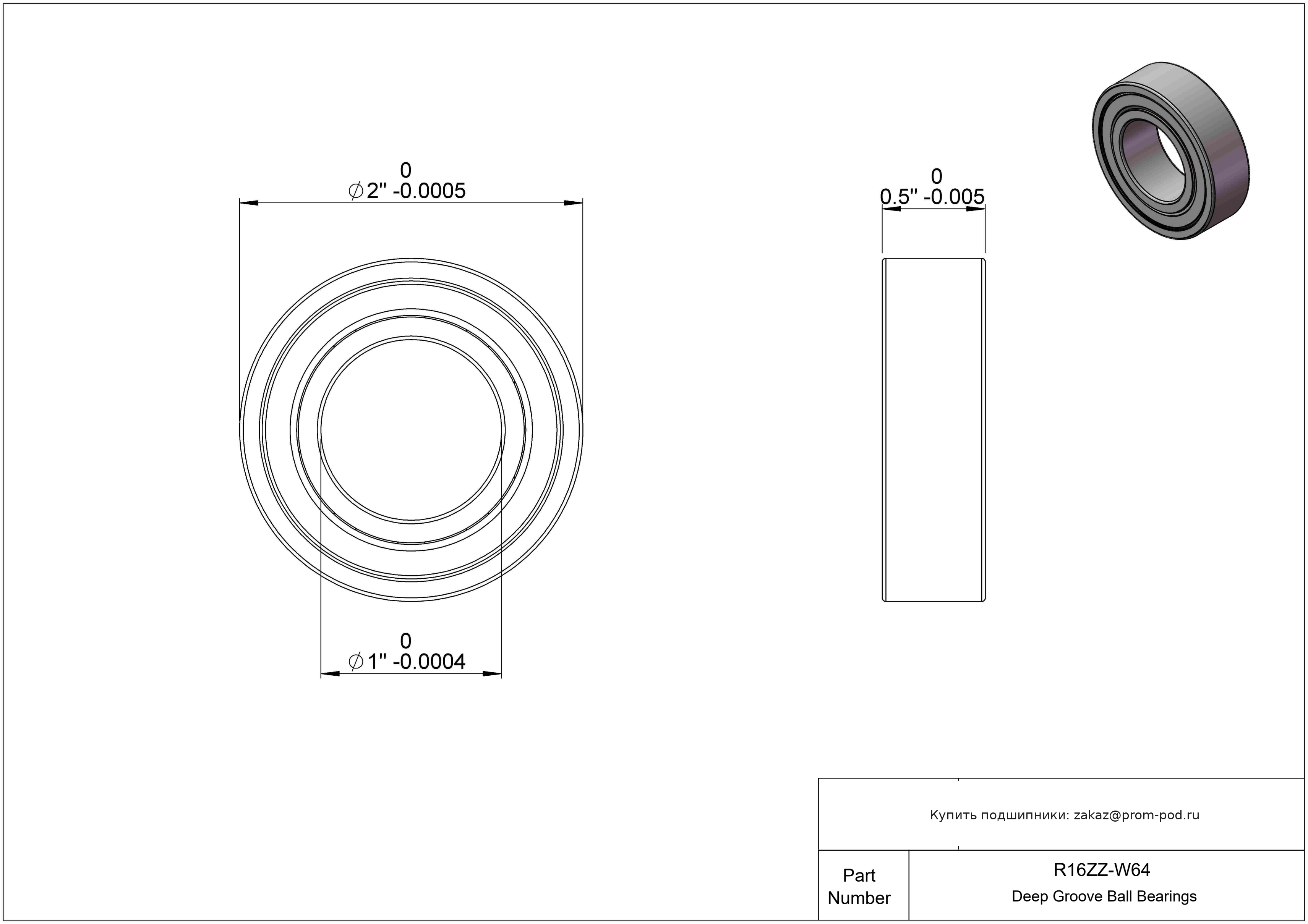 | R16 2RS | Шариковый подшипник | Инструмент дюймовой серии. Уплотнение с обеих сторон, NBR. |
