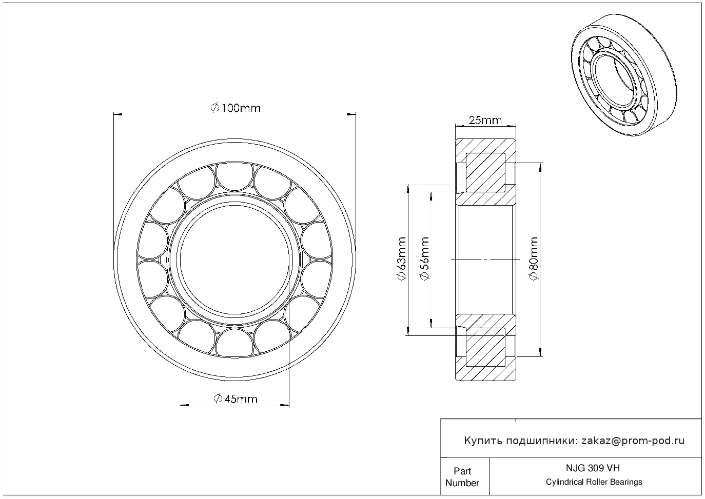 | 21309 AJ | Сферический роликовый подшипник | Угол контакта 25 градусов. Угол контакта 40 градусов для радиально-упорных типов. |