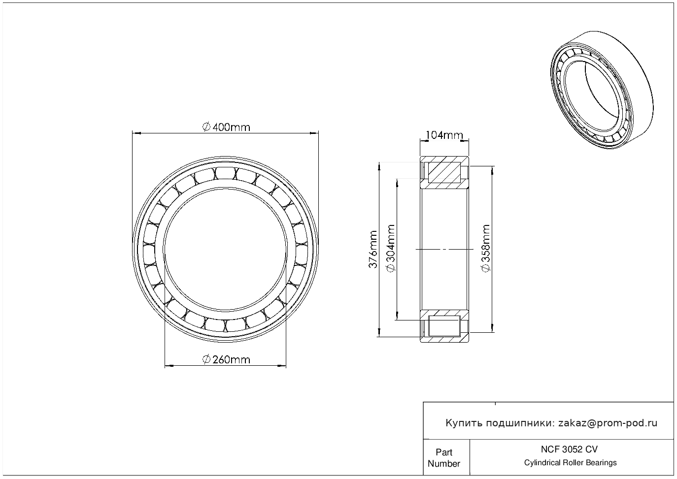 Цена на подшипник NCF 3052 CV является расчетной и зависит от следующих факторов: