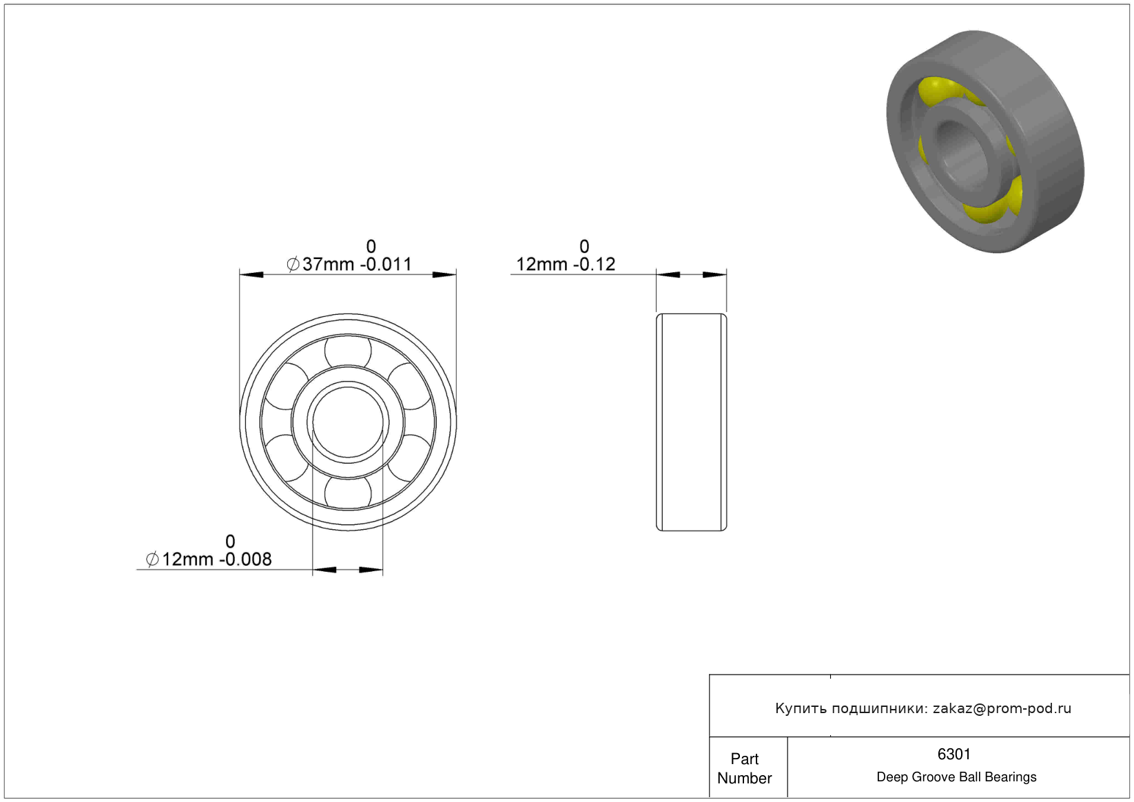 | 6301 2RS | Шариковый подшипник | Уплотнение с обеих сторон, NBR. |