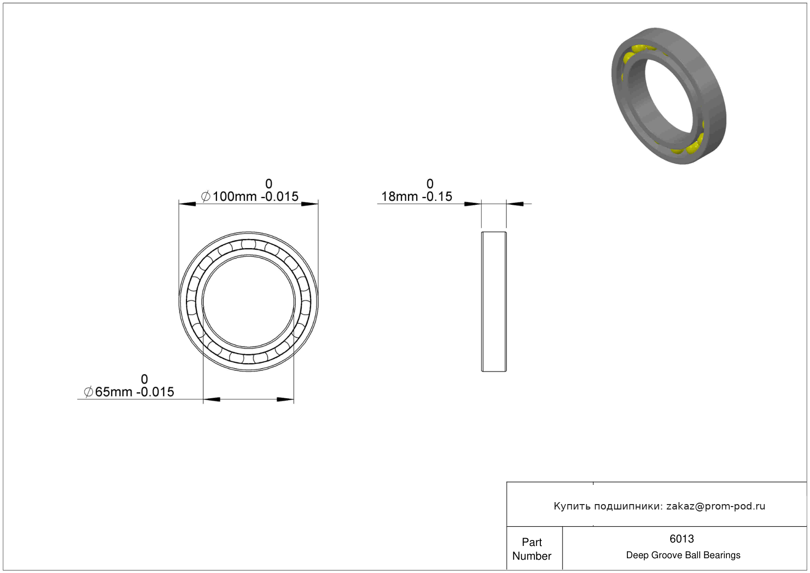 | 6013 2RS | Шариковый подшипник | Уплотнение с обеих сторон, NBR. |
