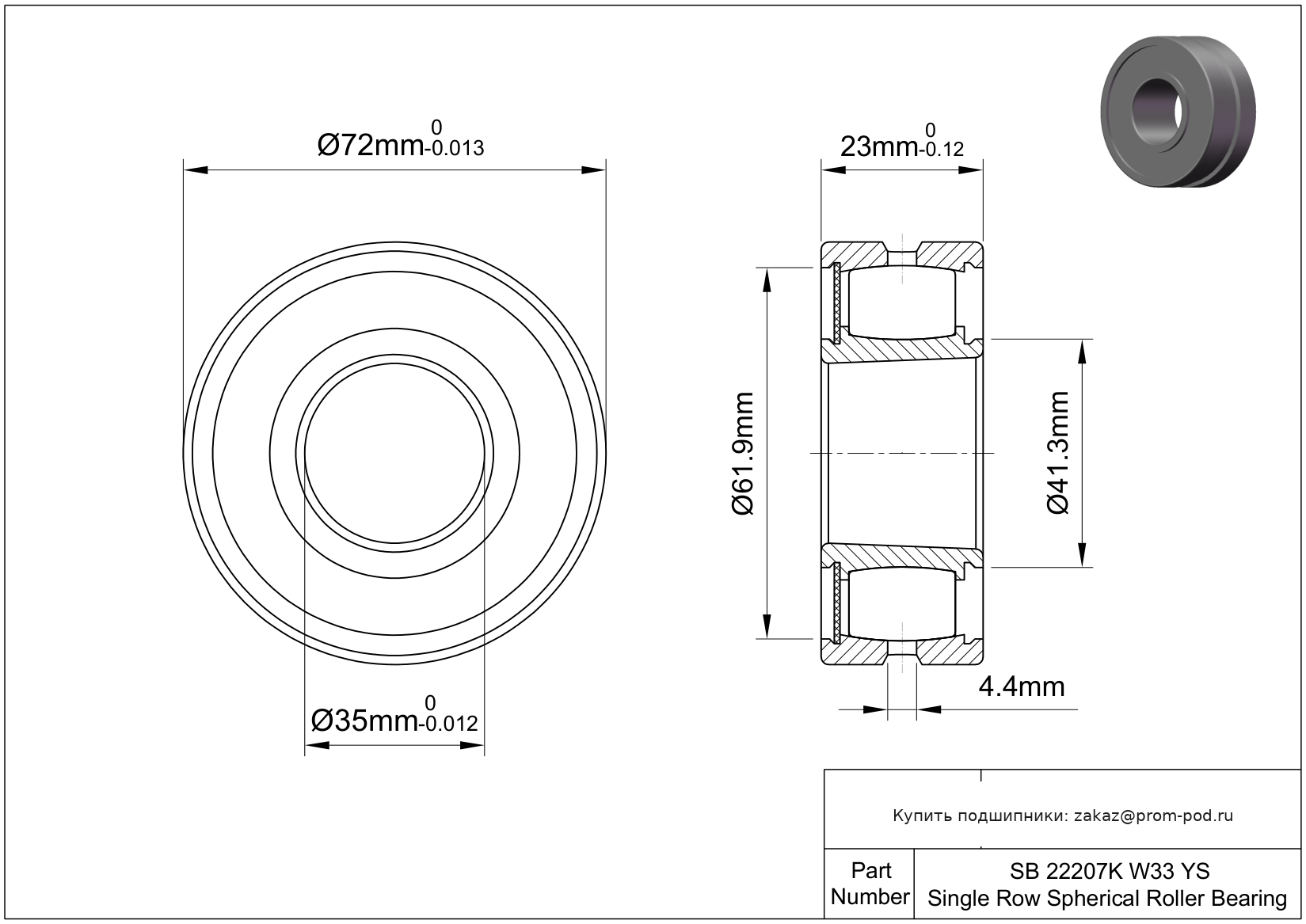 | CHCBTD | Сферический роликовый подшипник | |