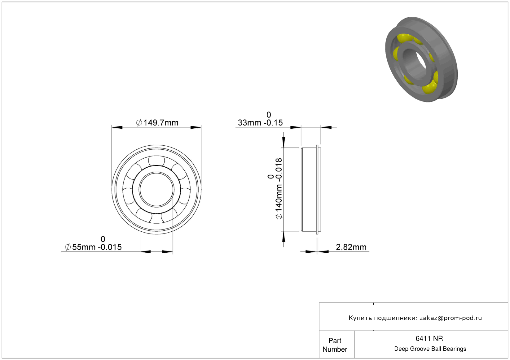 Однорядный подшипник с шириной картриджа, сверхмалого размера, с двумя уплотнениями из синтетической резины.